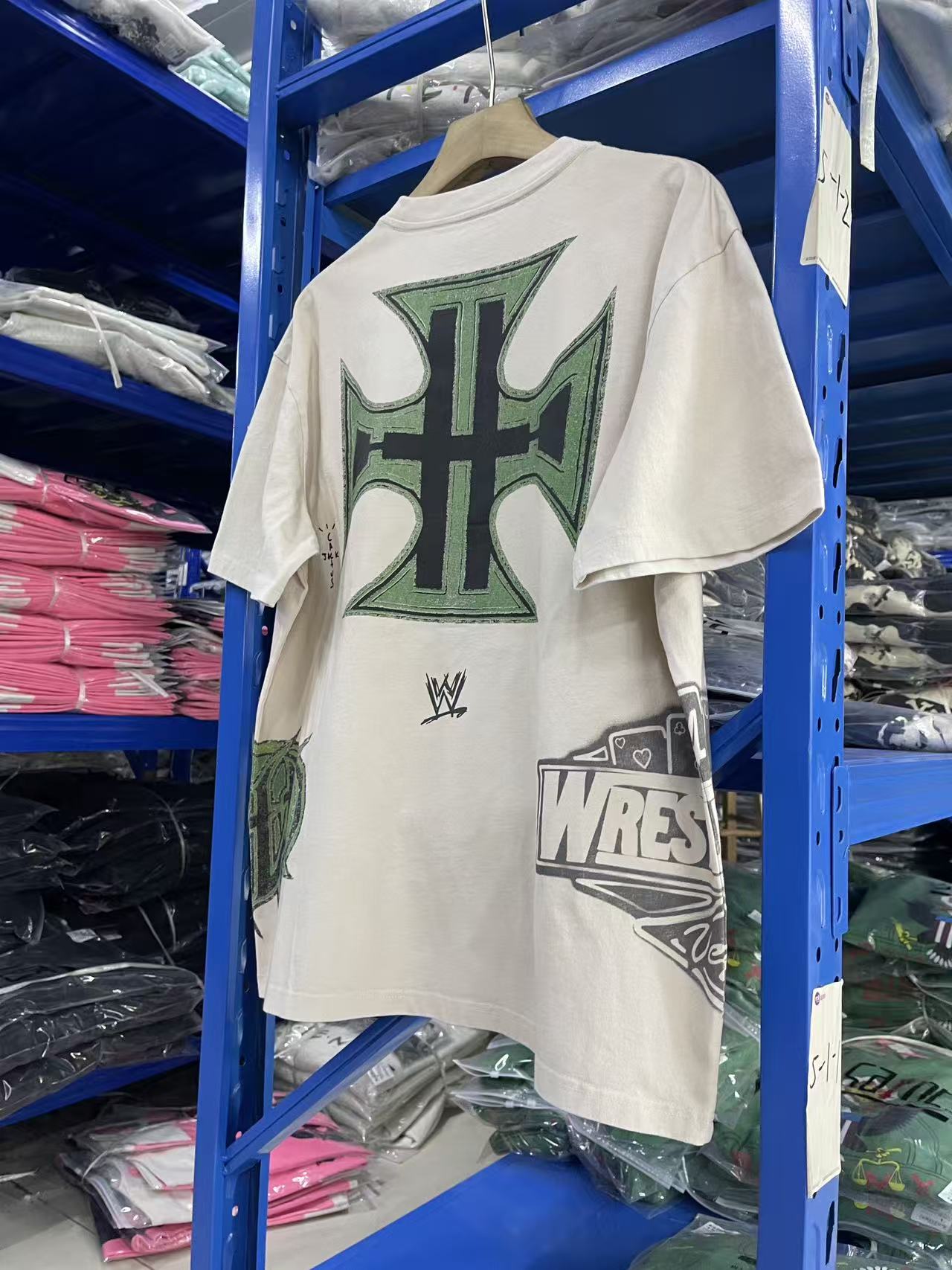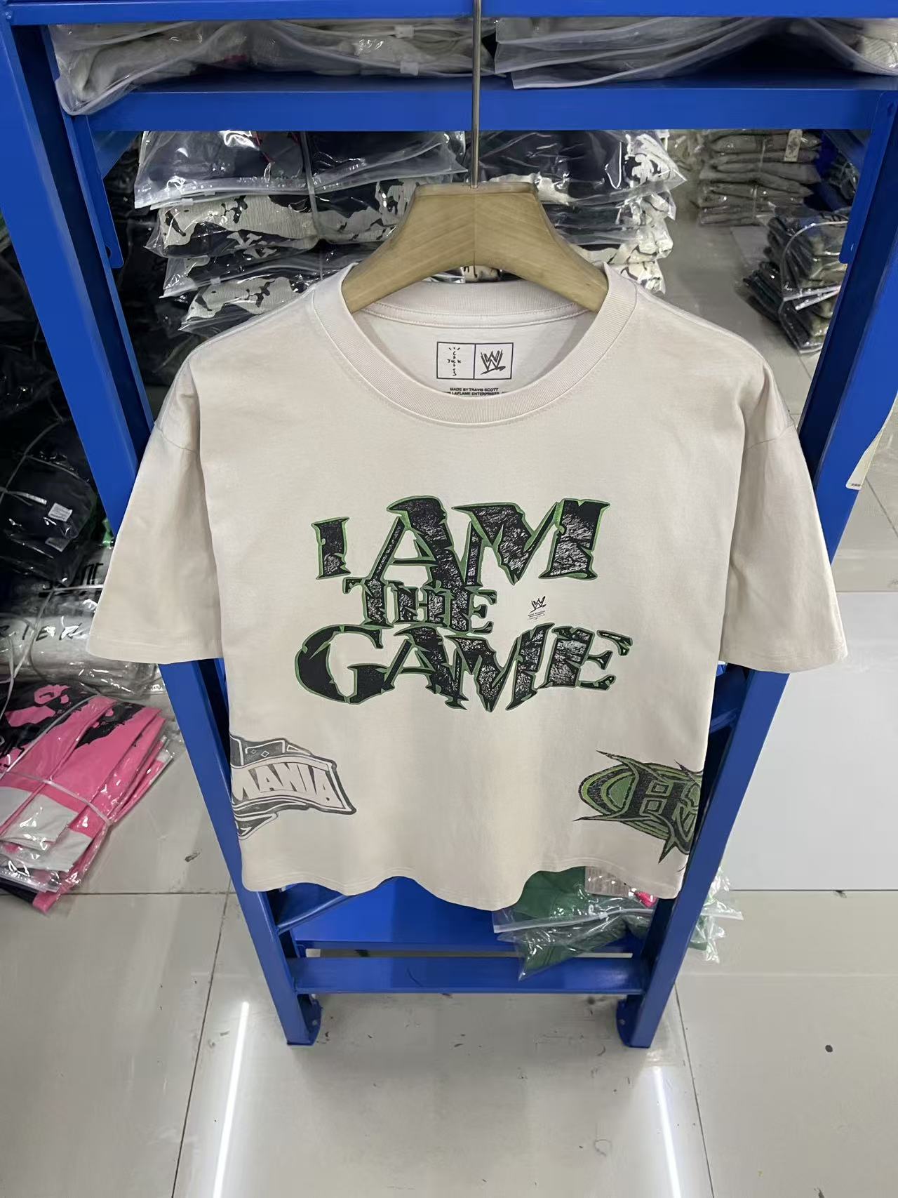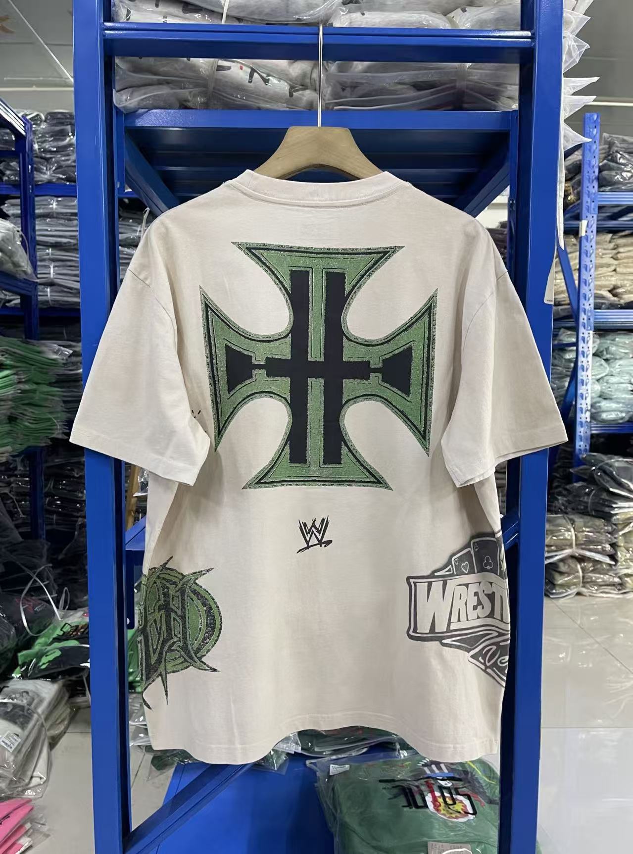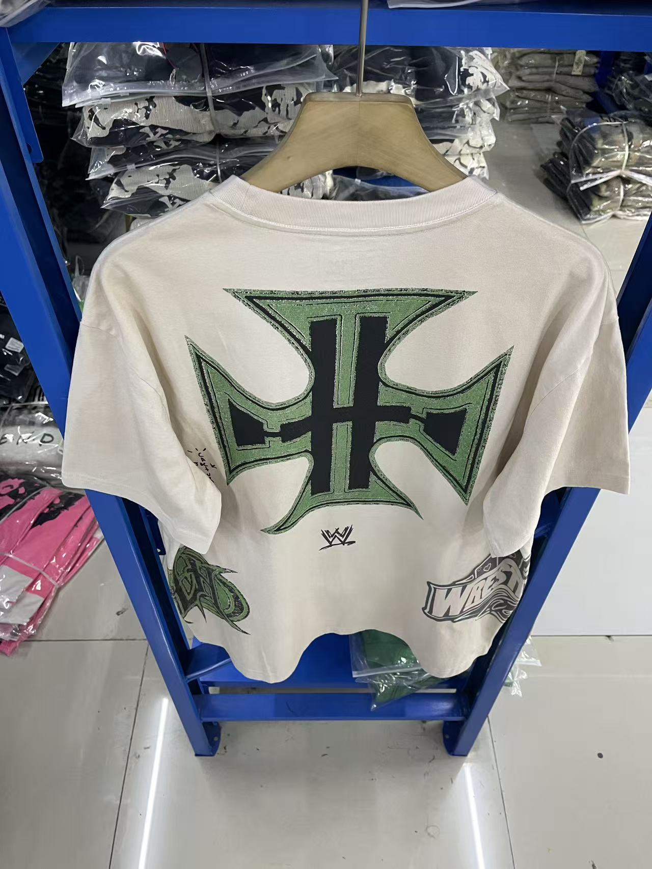 Travis Scott x WWE 联名款 SS26 logo图案字母印花做旧复古舒适休闲短袖T恤