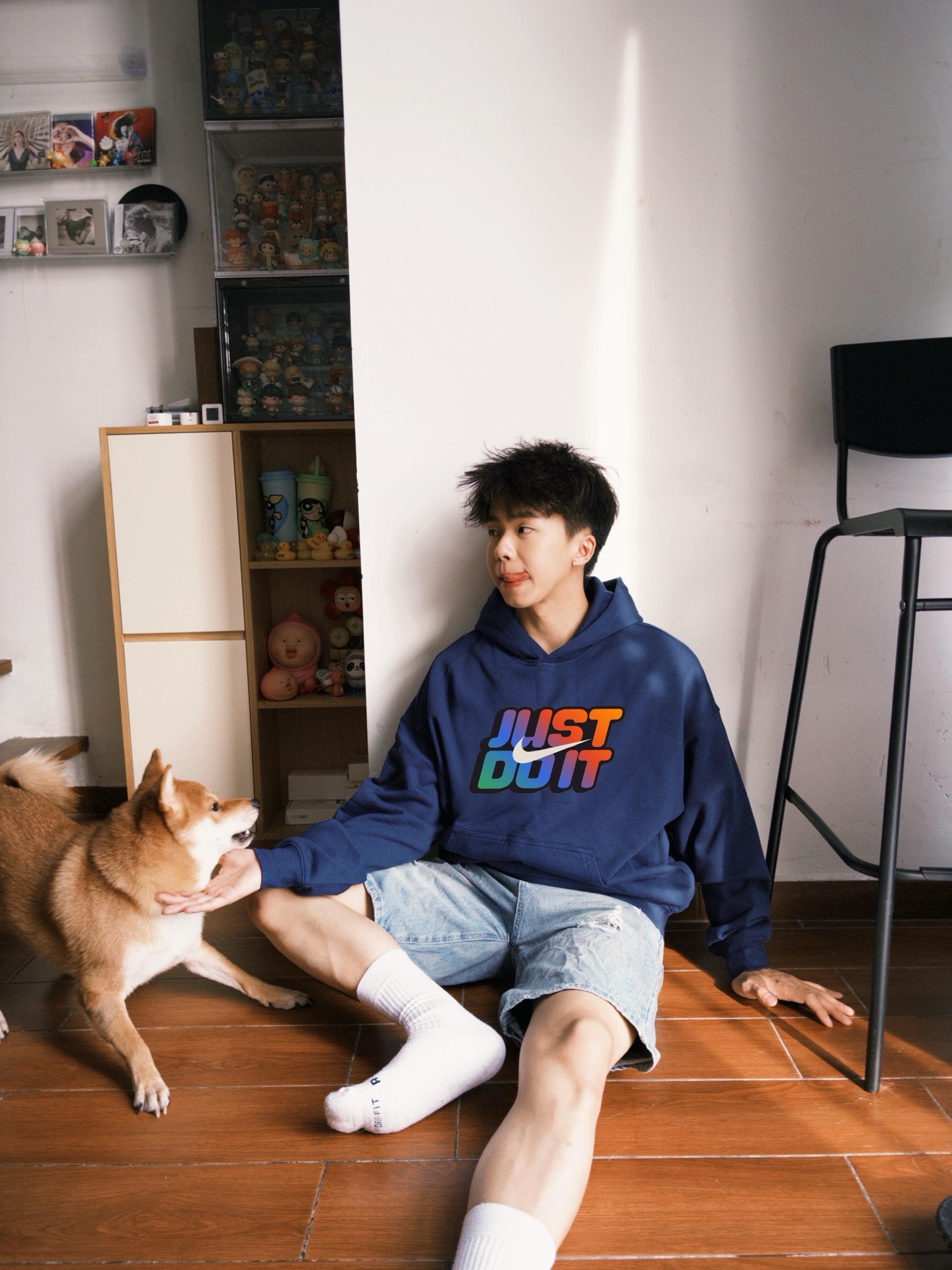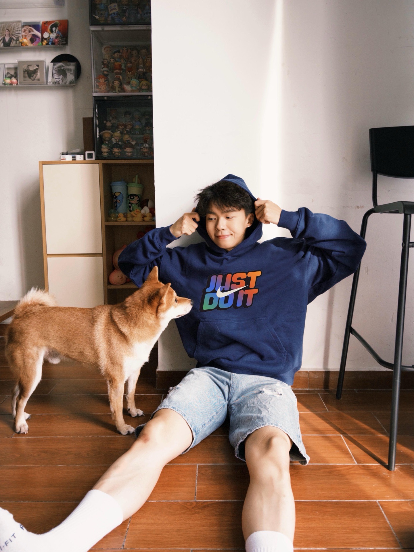 Nike 耐克彩虹just do it 冬季加绒重磅连帽卫衣