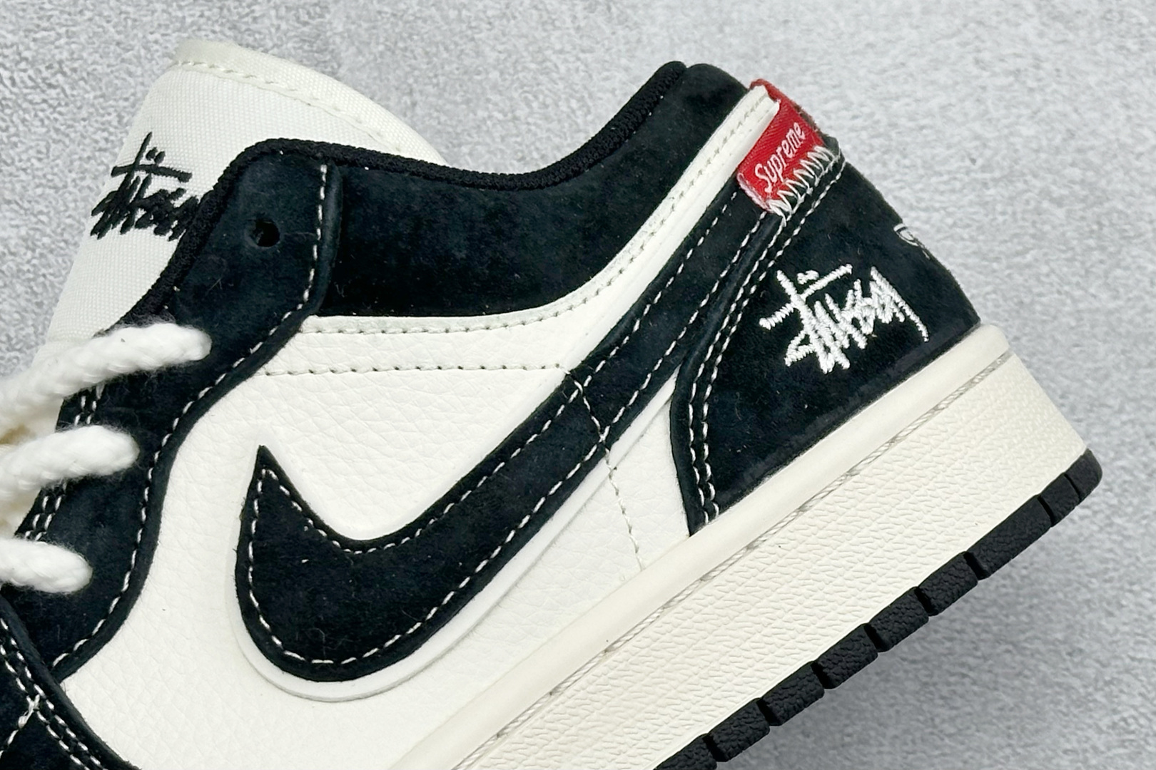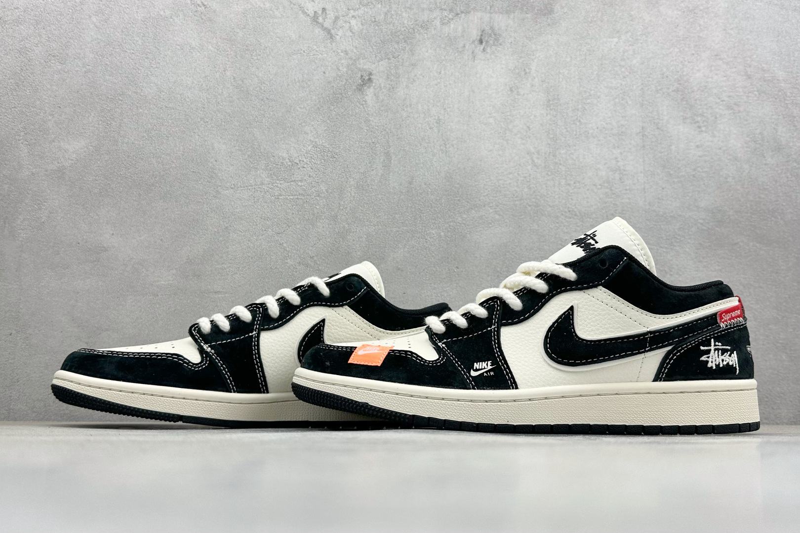 Air Jordan 1 Low AJ1 乔1 斯图西联名 米黑黄织布标 高端定制 低帮复古篮球鞋