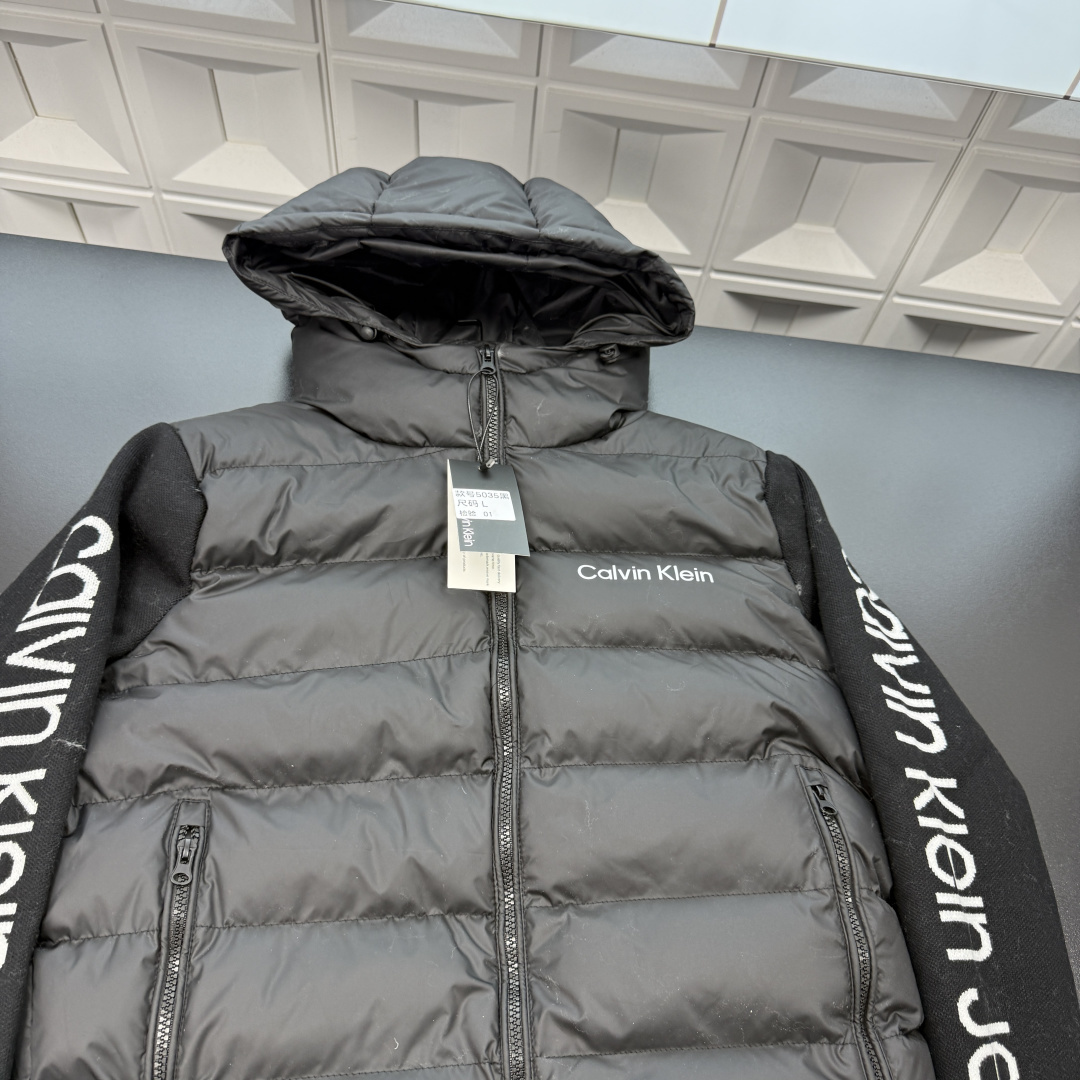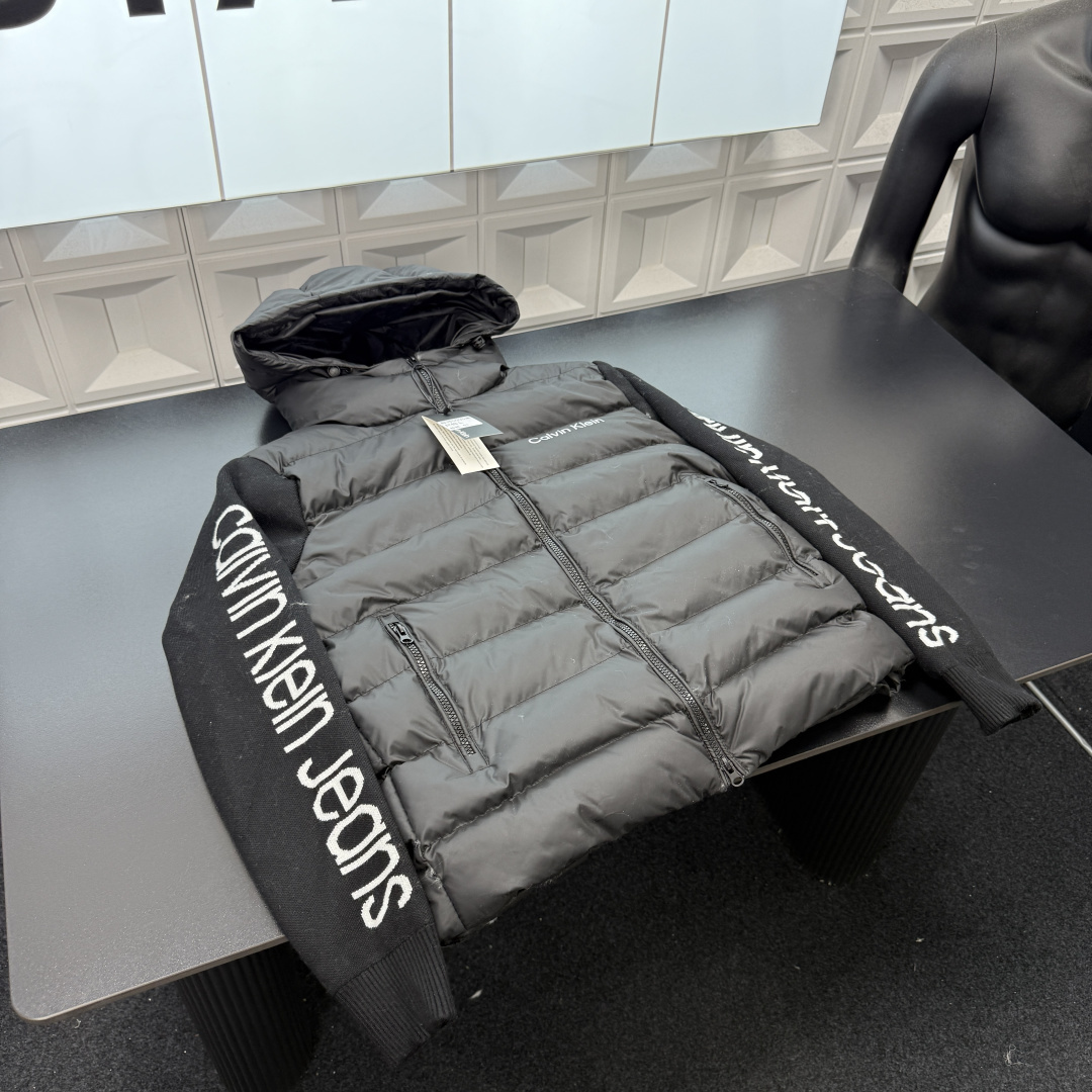 冬季热销爆款网红博主推荐款CK连帽羽绒棉服 拼接针织袖满印字母图案 排骨服 三标齐全官网一致 放大看细节原相机实物拍摄 颜色 黑色 尺码 L 4xl L 80 105斤 XL 105 120斤 2XL 120 140斤 3XL 140 160斤 4XL 160 180斤