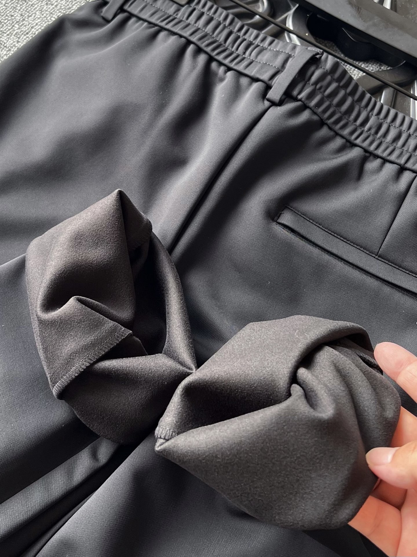 细节细节再细节 Armani家商场新款微直口松紧腰长裤 裤前阿玛尼三层组合工艺 十分精致 双侧暗拉链设计 保证随身携带安全性 高端浮雕金属抽绳孔 细节到位 腰口带有裤袢设计 满足习惯系腰带的需求 内里全包边双包条精湛做工 业界天花板
