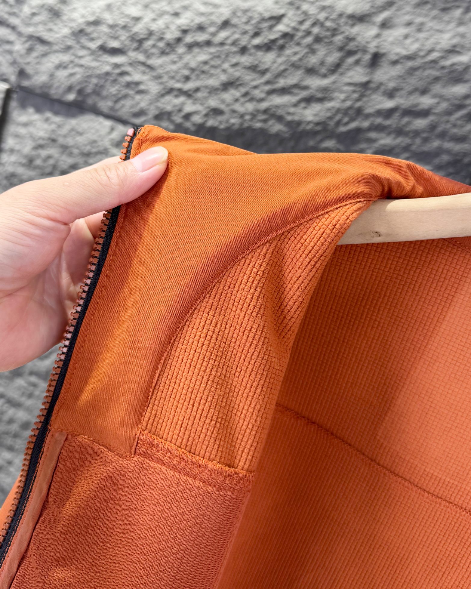 细节详情 图片为大货实拍 上下双拉链 撞色设计 透气性好 下摆双侧带有防风调节绳 可自由调节 领口定型设计 在保证颈部舒适和挺阔的前提下 在内里加薄棉定型 久洗不软塌