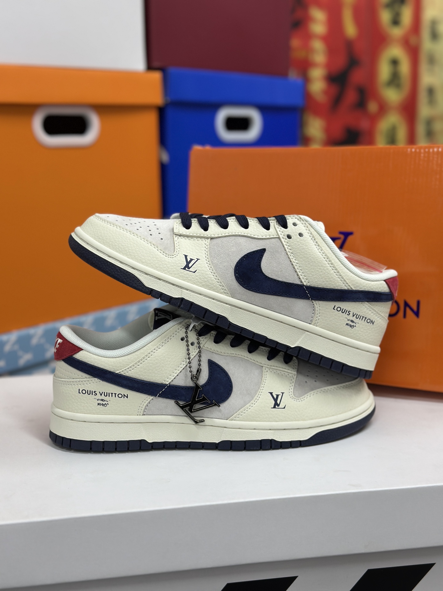 原TH高版本Nike SB Dunk Low LV联名 翻毛藏蓝 周年高端定制 低帮休闲板鞋 定制鞋盒 大厂纯原品质出货 超高清洁度 皮料切割干净无任何毛边 细节完美