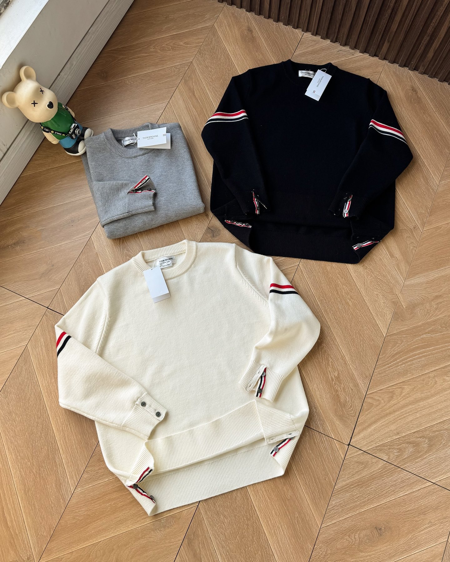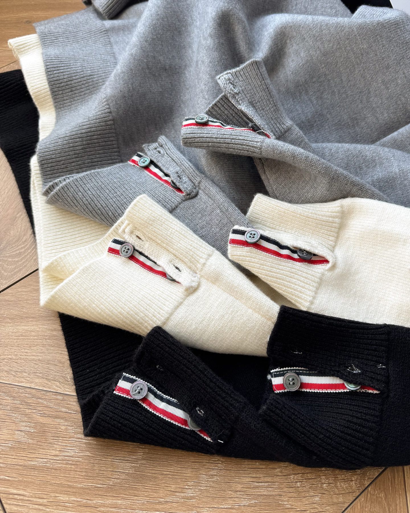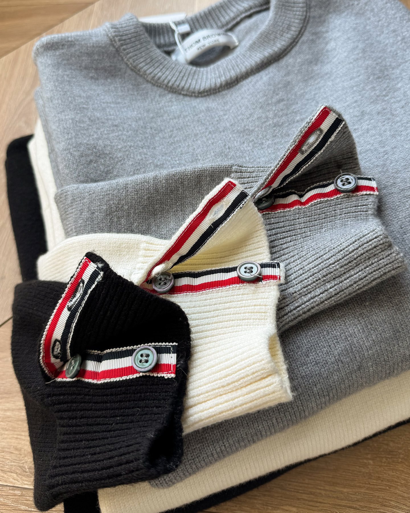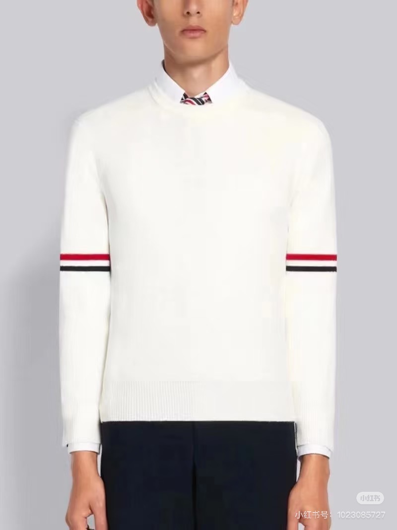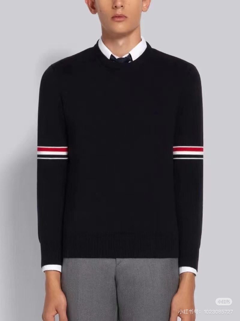Thom Browne2025汤姆布朗经典圆领袖臂彩条4色针织毛衣男女情侣款套头毛衣 纱线高端定制 限定款TB学院风套头 每年都会出一些Tb毛衣 很经典的英伦风设计 减龄学院风 超细纱线混纺材质 面料非常舒适 经典圆领套头款式 设计充满了时尚大方气质 袖口跟下摆都是转机踩上去的 纽扣都是定制的贝壳扣哦 非常难做 这款毛衣休闲而不失高级感 超多穿搭选择