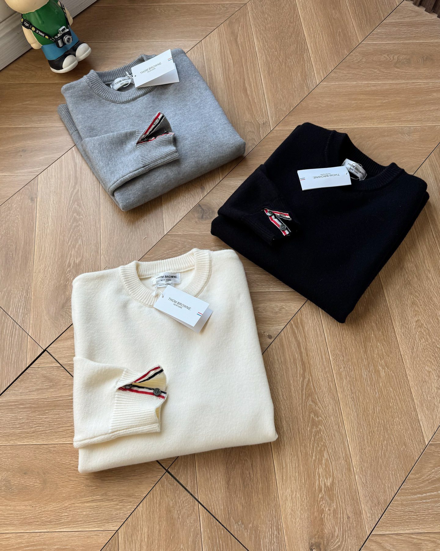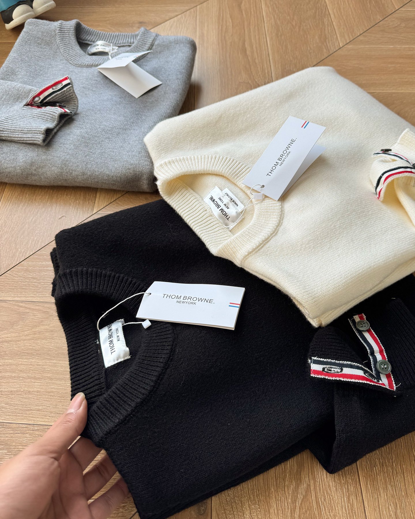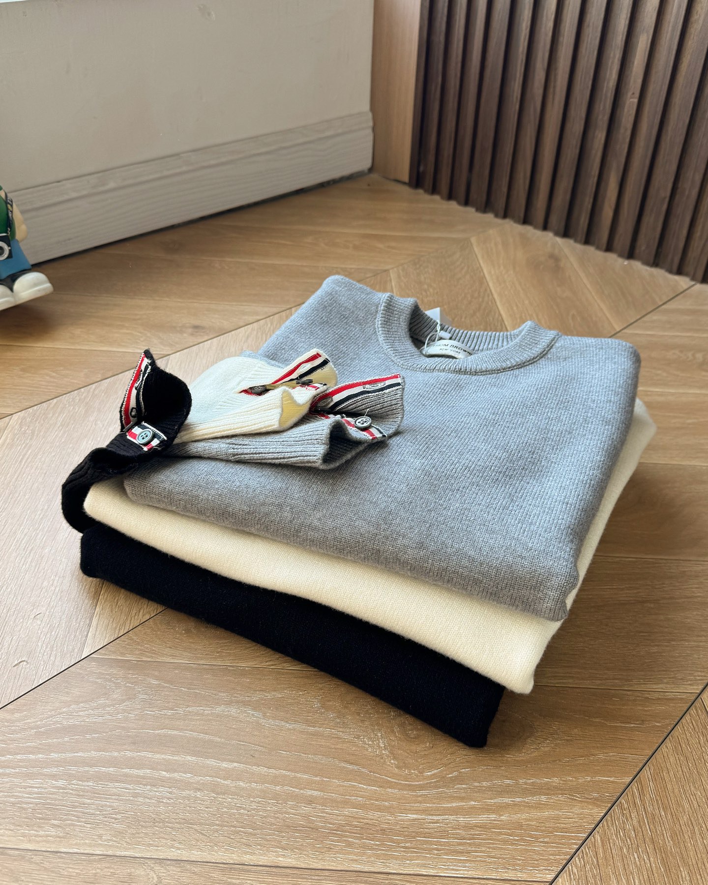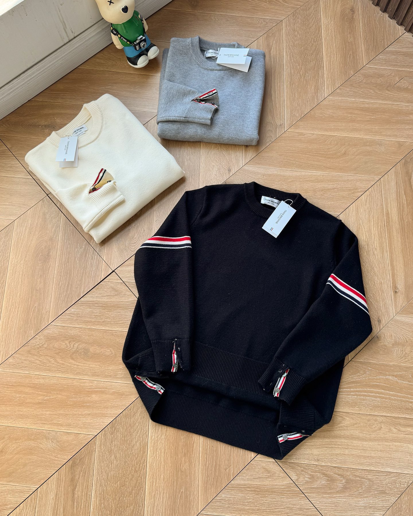 Thom Browne2025汤姆布朗经典圆领袖臂彩条4色针织毛衣男女情侣款套头毛衣 纱线高端定制 限定款TB学院风套头 每年都会出一些Tb毛衣 很经典的英伦风设计 减龄学院风 超细纱线混纺材质 面料非常舒适 经典圆领套头款式 设计充满了时尚大方气质 袖口跟下摆都是转机踩上去的 纽扣都是定制的贝壳扣哦 非常难做 这款毛衣休闲而不失高级感 超多穿搭选择