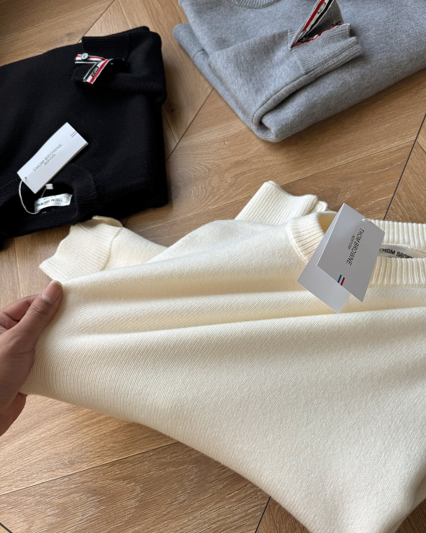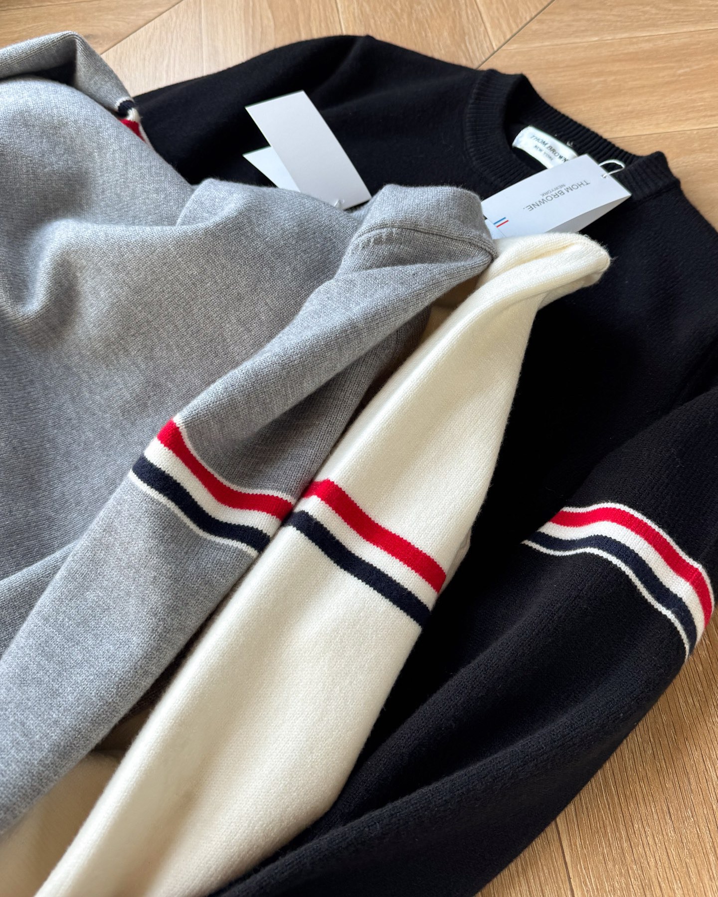 145294034 - Thom Browne2025汤姆布朗经典圆领袖臂彩条4色针 490183