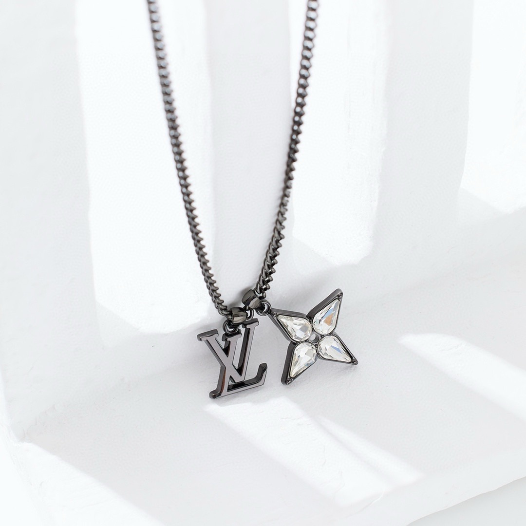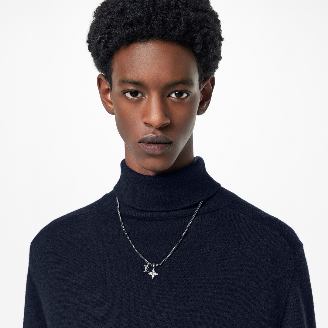 本款 Flower Cut 项链援引标志性 Cyclone 太阳眼镜设计 为经典 Monogram 花卉注入摩登韵致 LV 字母挂饰悬挂于可调节链带之上