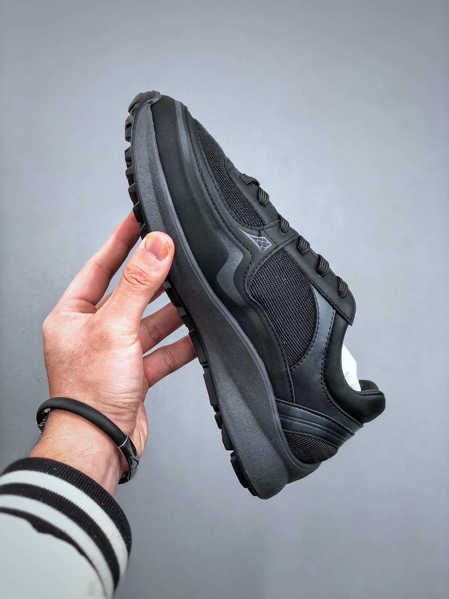 延续标志性解构化廓形 鞋身以简约立体线条及双A logo呈现 鞋面覆盖透气帆布面料 注入上层柔软提升脚感 采用廓形橡胶厚底 几何纹理点缀橡胶包边细节 增高拉腿效果堪比腿部整形 巨显腿细腿长各种风格都能轻松hold住随便搭
