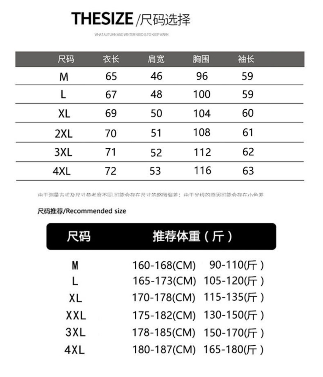 尺码 M 4XL