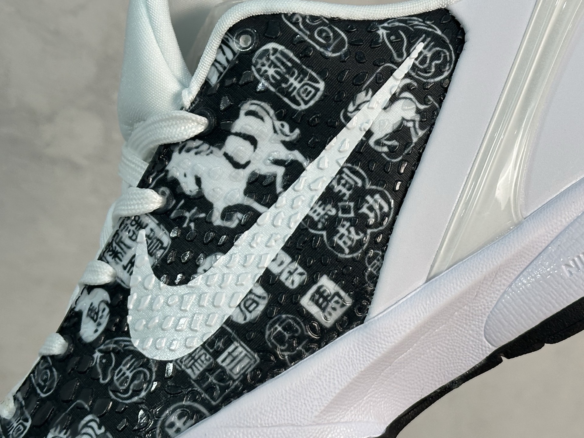 鞋面以经典黑白为主调 黑色基底上满印灵动的骏马图腾 搭配 马到成功 新春吉庆 等国风汉字纹样 将2026马年的美好寓意与传统年味揉入设计 标志性的白色Swoosh Logo镶嵌其间 与鞋身的纹理形成鲜明对比 视觉冲击力拉满 科比6代经典的低帮鞋型搭配Flyknit编织材质 兼顾轻量化与包裹感 让每一次变向 突破都轻盈利落 中底搭载真碳Zoom Air气垫 落地缓震与启动反馈双在线 延续科系列的顶级实战性能 无论是实战赛场的激烈对抗 还是日常出街的搭配造型 都能完美适配 鞋身的骏马元素不仅是生肖纪念的象征 更与曼巴 永不停歇 全力冲刺 的精神相呼应 如同骏马奔腾 在球场之上一往无前 以极致实力诠释 马到成功 的真谛 从细节满满的国风设计 到传承经典的实战科技 这双定制款科比6 既是对马年的美好献礼 也是对曼巴精神的致敬 收藏与上脚价值兼具 是篮球爱好者与潮流玩家不可错过的宝藏鞋款 货号 CW2190 028