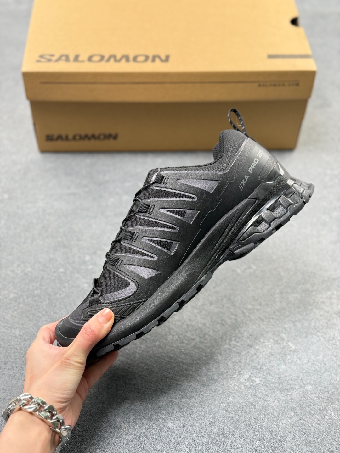 莞顶礼盒版 SALOMON萨洛蒙 XA Pro 3D V9 GTX 圆头 支撑抓地 低帮 户外功能鞋 黑色 472701