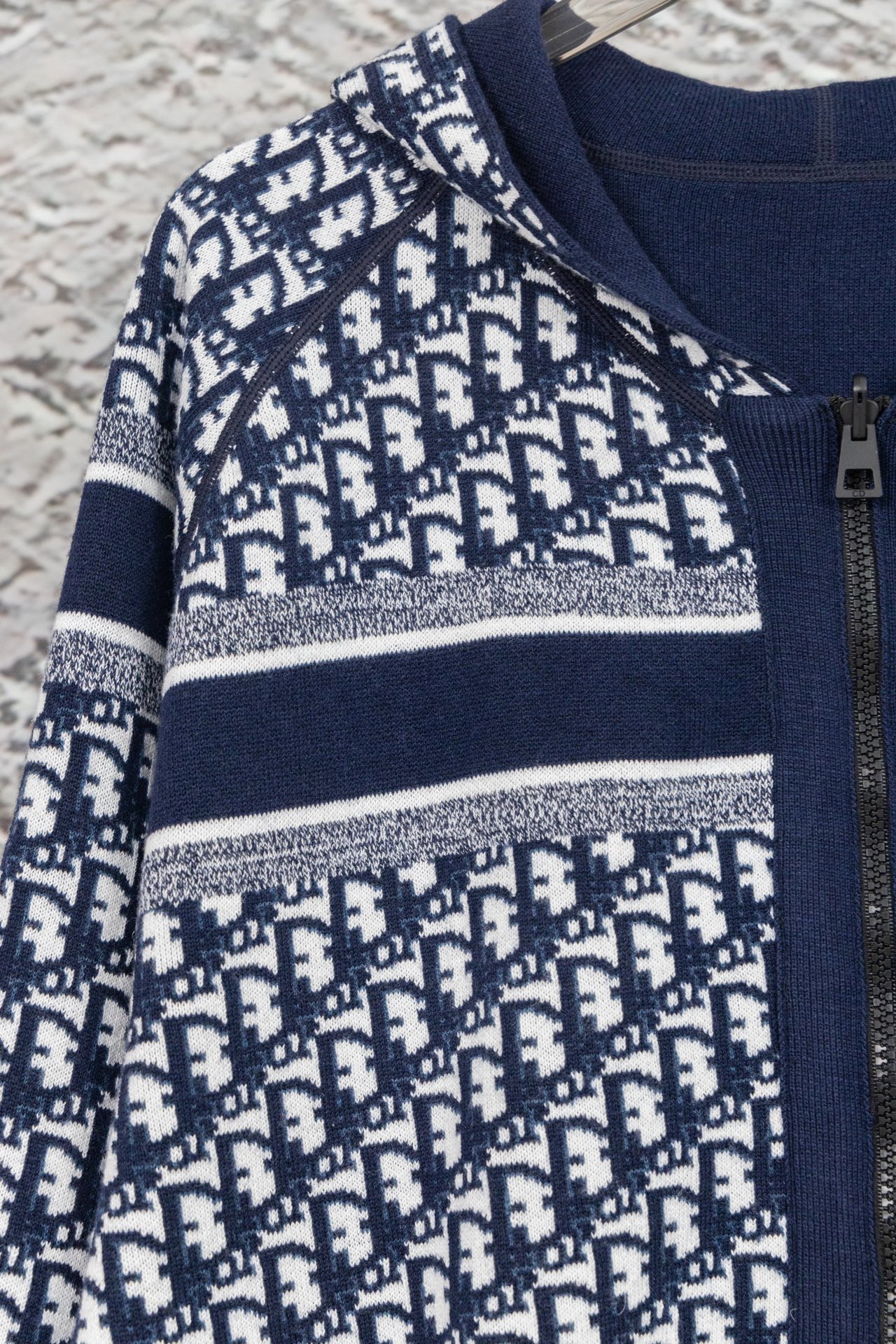 款号 Y044 DIOR 迪奥 双面羊绒老花logo针织外套 超级厚实的一款外套 第一面是纯色logo拼接 第二面是Dior经典老花 面料是进口羊绒十羊毛混纺 摸起来如婴儿皮肤般细腻柔软 做工精细 懂货的来 吊牌 吊粒 水洗 包装袋 全套辅料 颜值相当高 做工超精致 颜色 灰色 藏青色 尺码 S M L XL