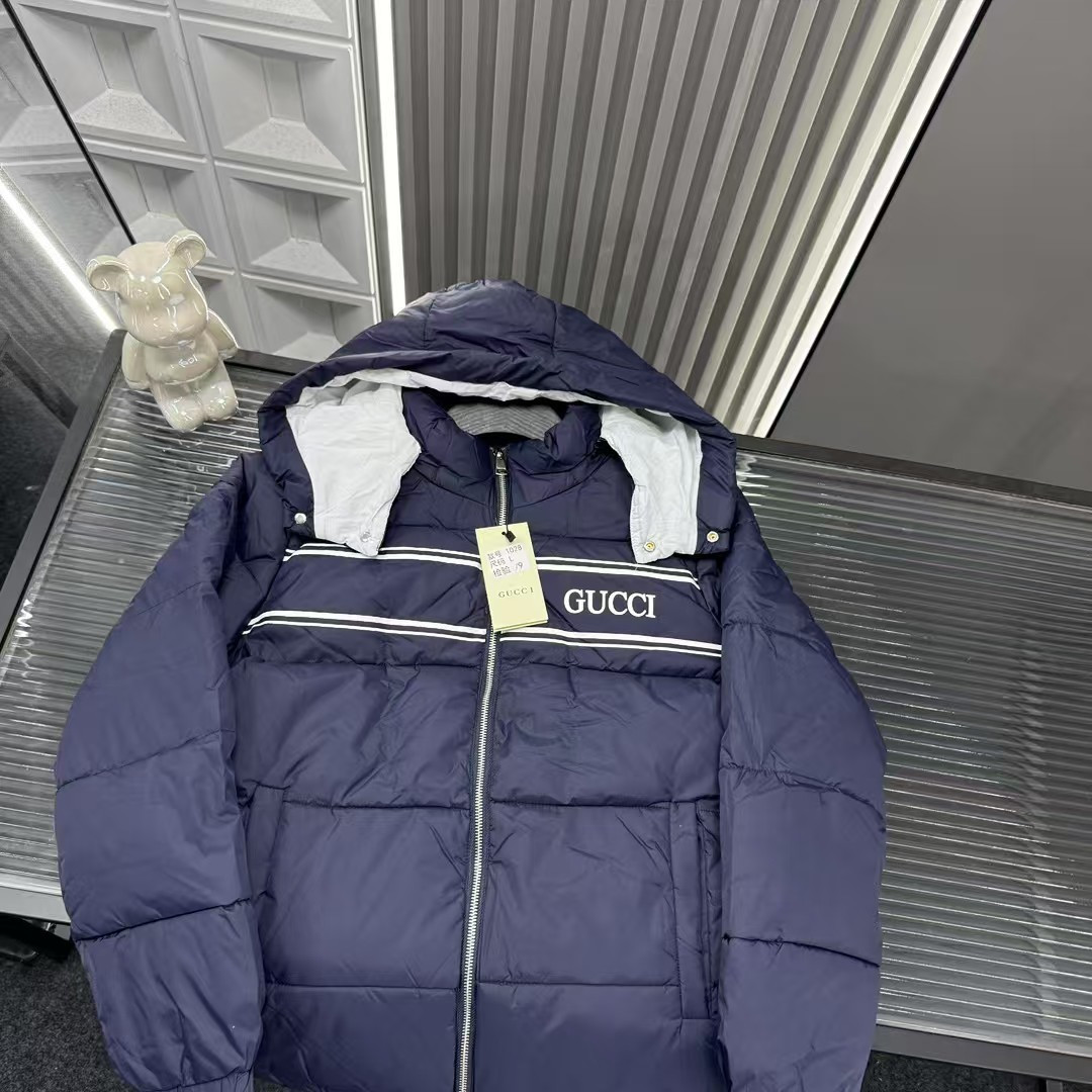 秋冬爆款热销款推荐Gucci古驰羽绒棉服 胸前横幅刺绣字母Logo连帽外套 帽子可拆卸 三标齐全官网一致 放大看细节原相机实物拍摄 颜色 藏青色 尺码 L 4xl L 80 105斤 XL 105 120斤 2XL 120 140斤 3XL 140 160斤 4XL 160 180斤