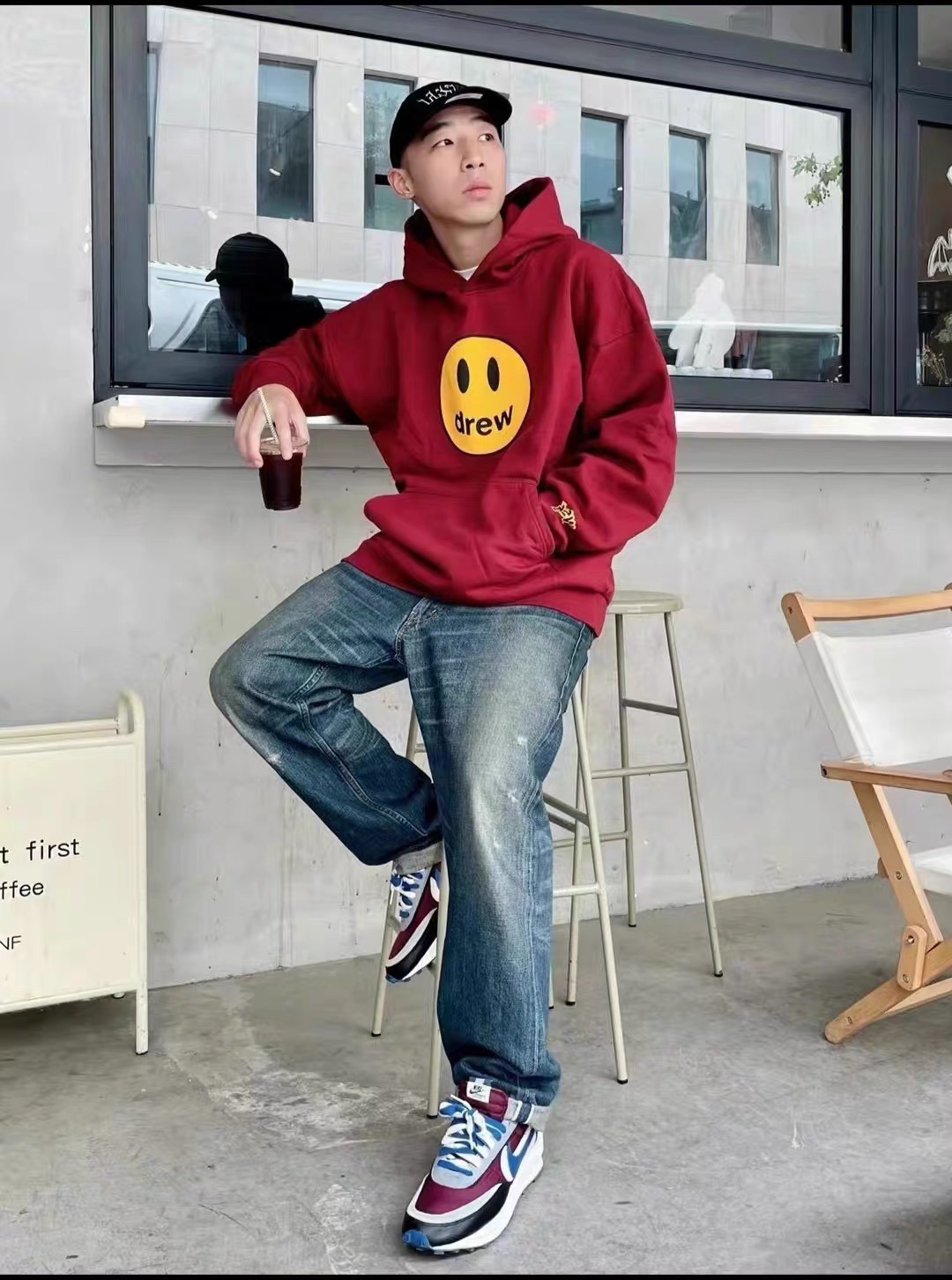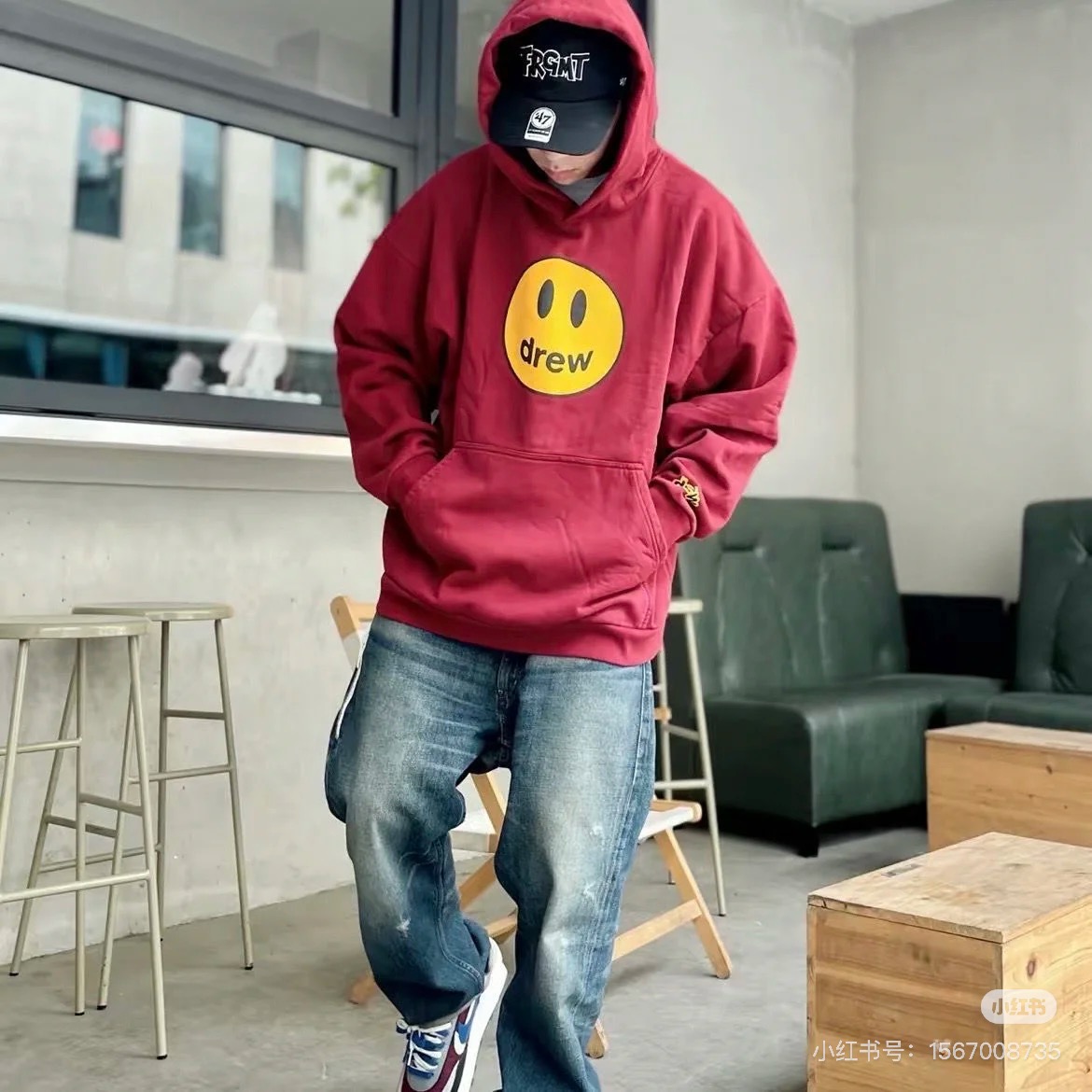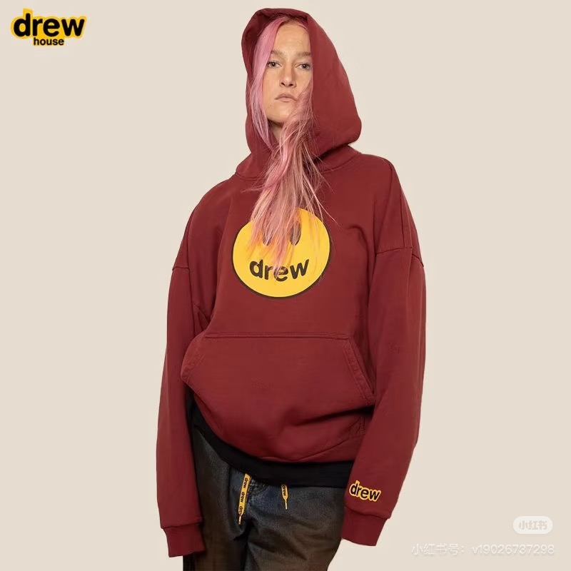 DREW HOURS 基础色系笑脸印花 轻奢时尚连帽卫衣 男女同款