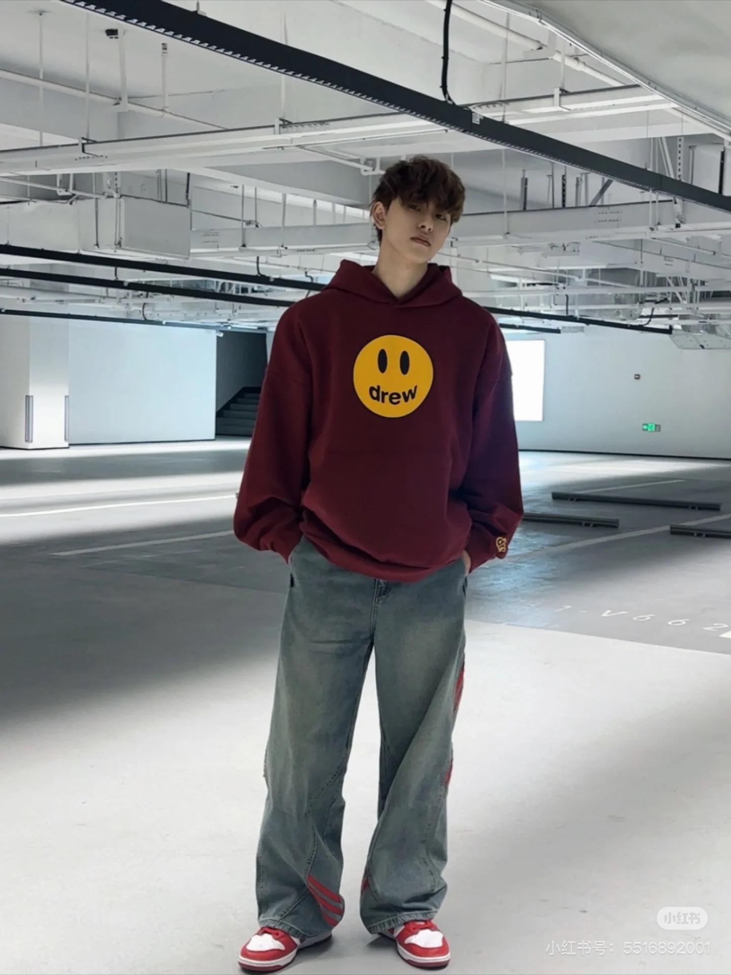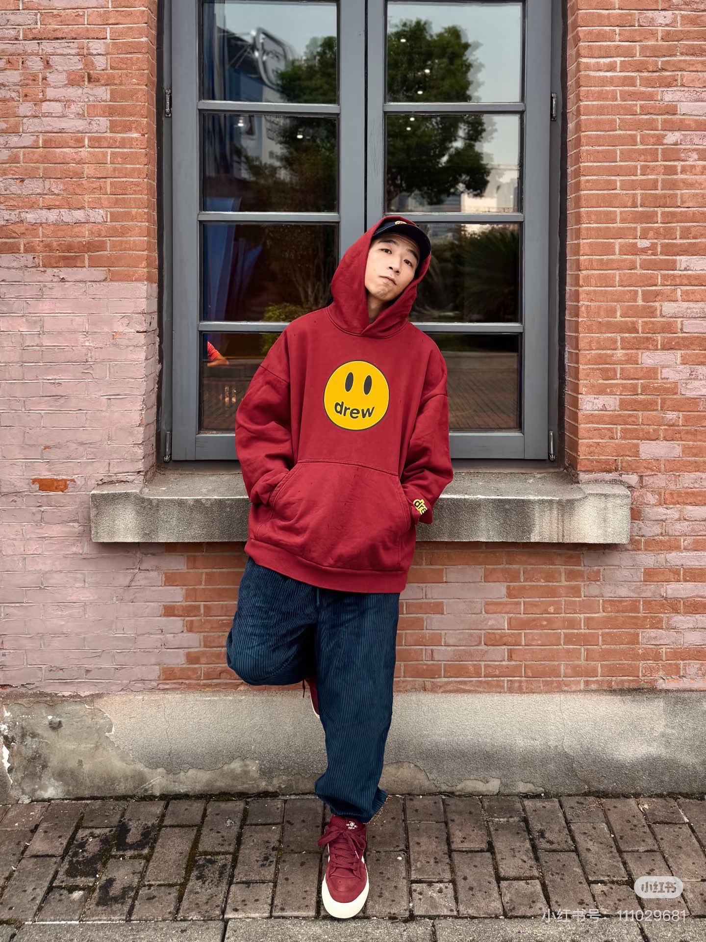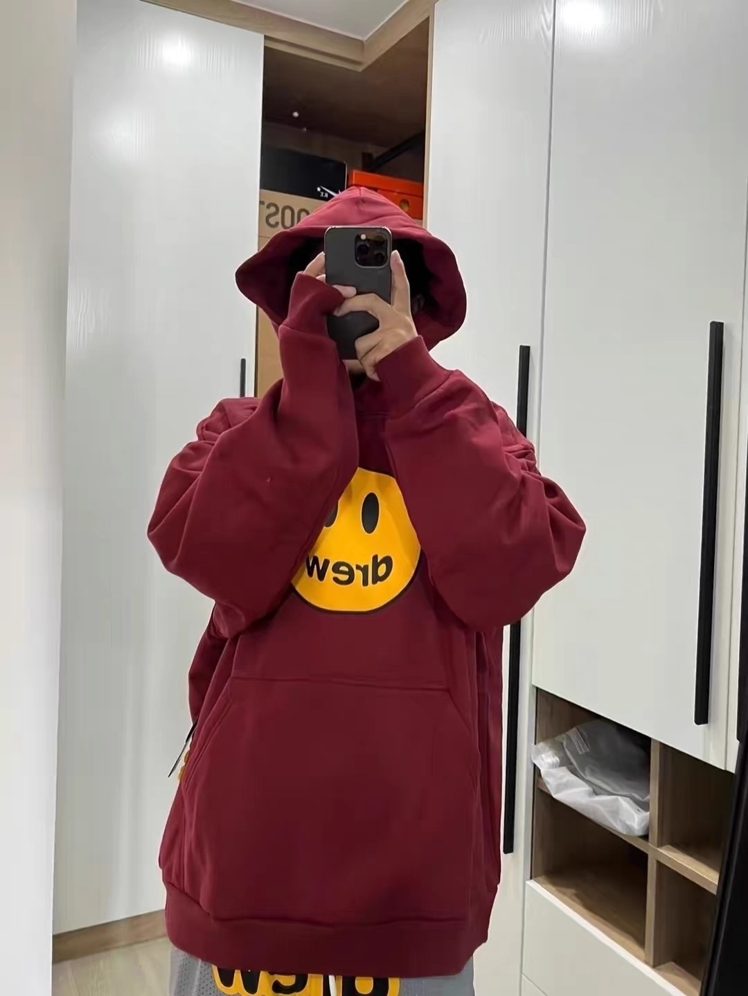 DREW HOURS 基础色系笑脸印花 轻奢时尚连帽卫衣 男女同款
