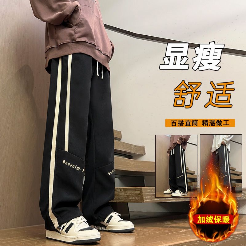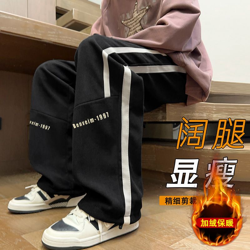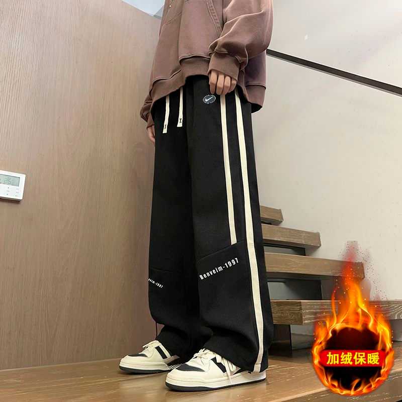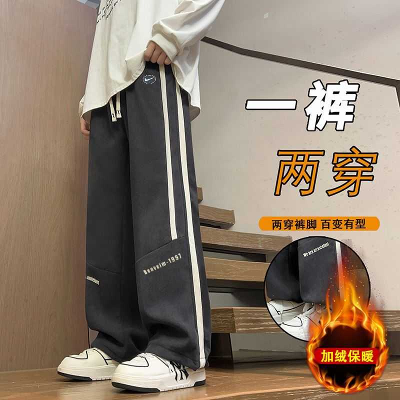 加绒加厚 NIKE 耐克秋冬主推新款时尚加绒加厚百搭纯色侧边拼接不对称双宽织带直筒学生卫裤休闲裤长裤
