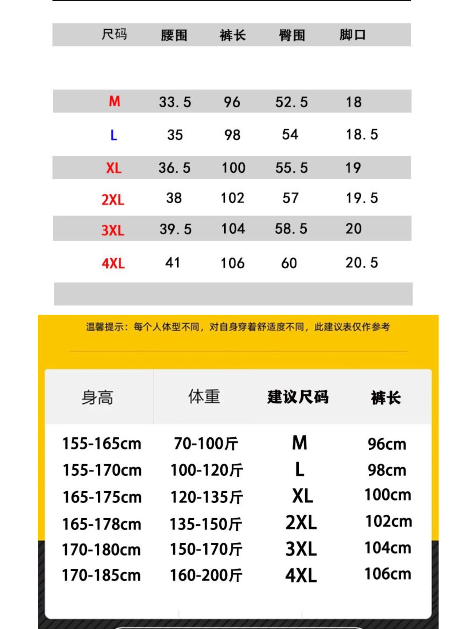 尺码 M 4XL