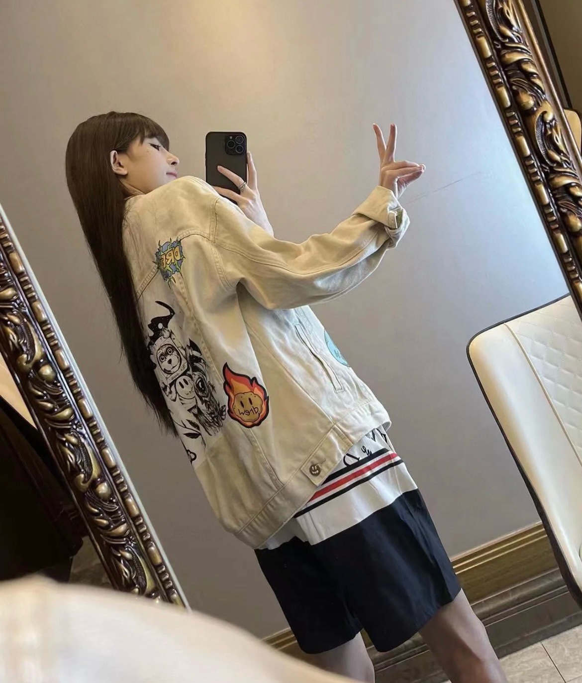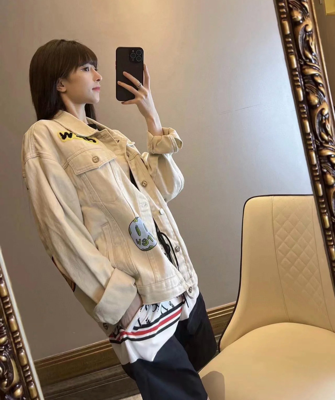 135162766 - Drew House 笑脸系列字母logo系列男女牛仔夹克外