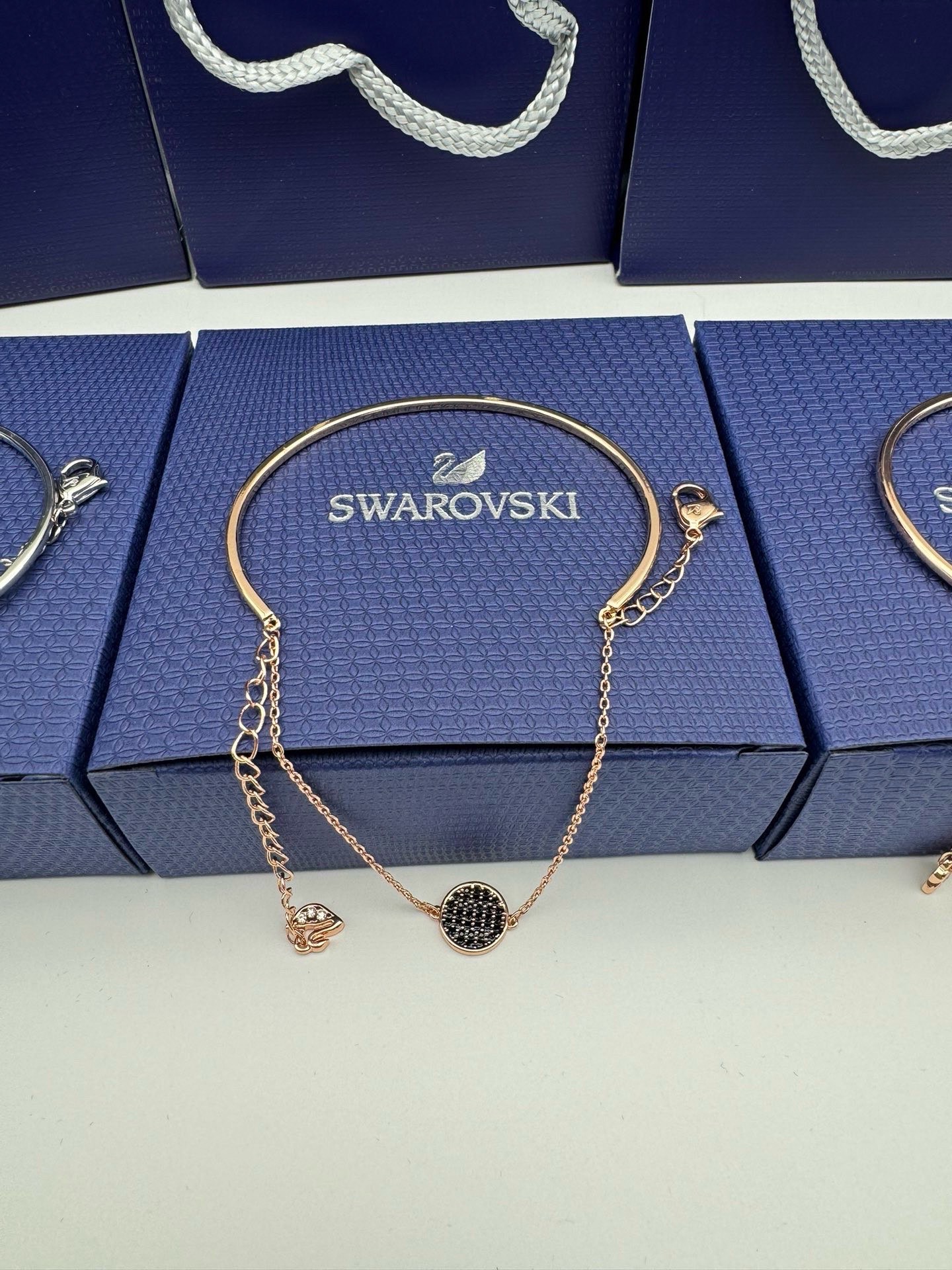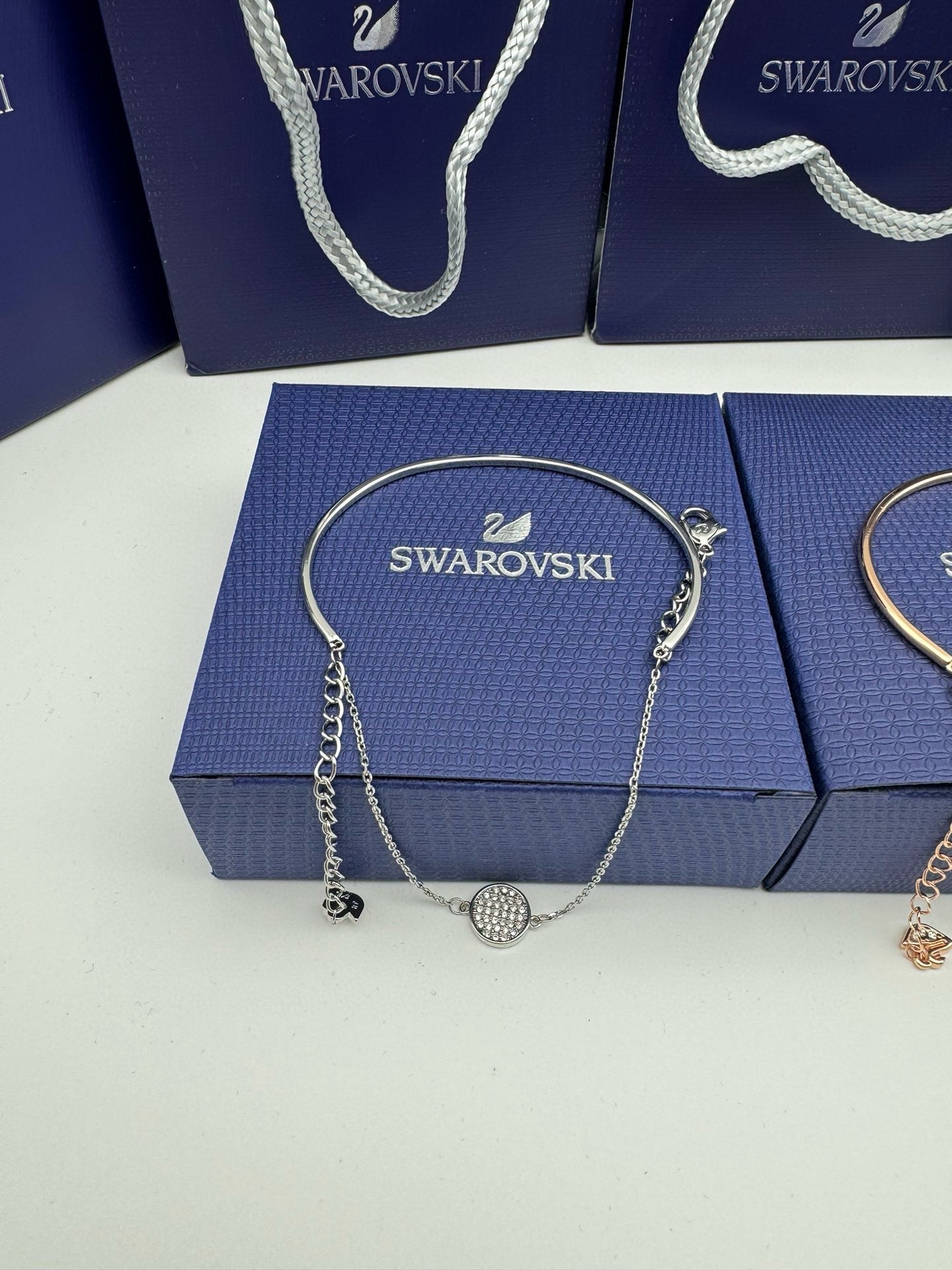 售后不停可退换 SWAROVSKI施华洛世奇 双层圆环手镯手链 配全套包装 款426 施华洛世奇原厂订单 深圳出口港货 仅此一批 礼物准备好了吗 2圈的设计 不会太单调手也不会太空 显白显质感真的太好看了 颜值高于一切 真的很美闭眼入啊 搭配手表就更绝了 象征优雅及高贵是施华洛世奇首饰的标志 自信 幸运并且一生只有一个伴侣 象征着一心一意 代表珍贵而永恒的爱情 这款镀玫瑰金色手镯是畅销系列Ginger的新品 可为装扮增添迷人亮点 圆片装饰上缀有密镶Swarovski仿水晶 展现施华洛世奇的经典光彩 您更可搭配施华洛世奇的腕表 打造流行的层次感 链长 可调节 材质 仿水晶 镀玫瑰金色调 颜色 银色 玫瑰金白 玫瑰金黑 黄金黑 系列 Ginger