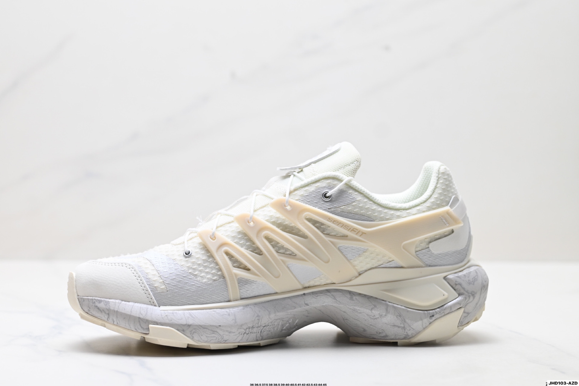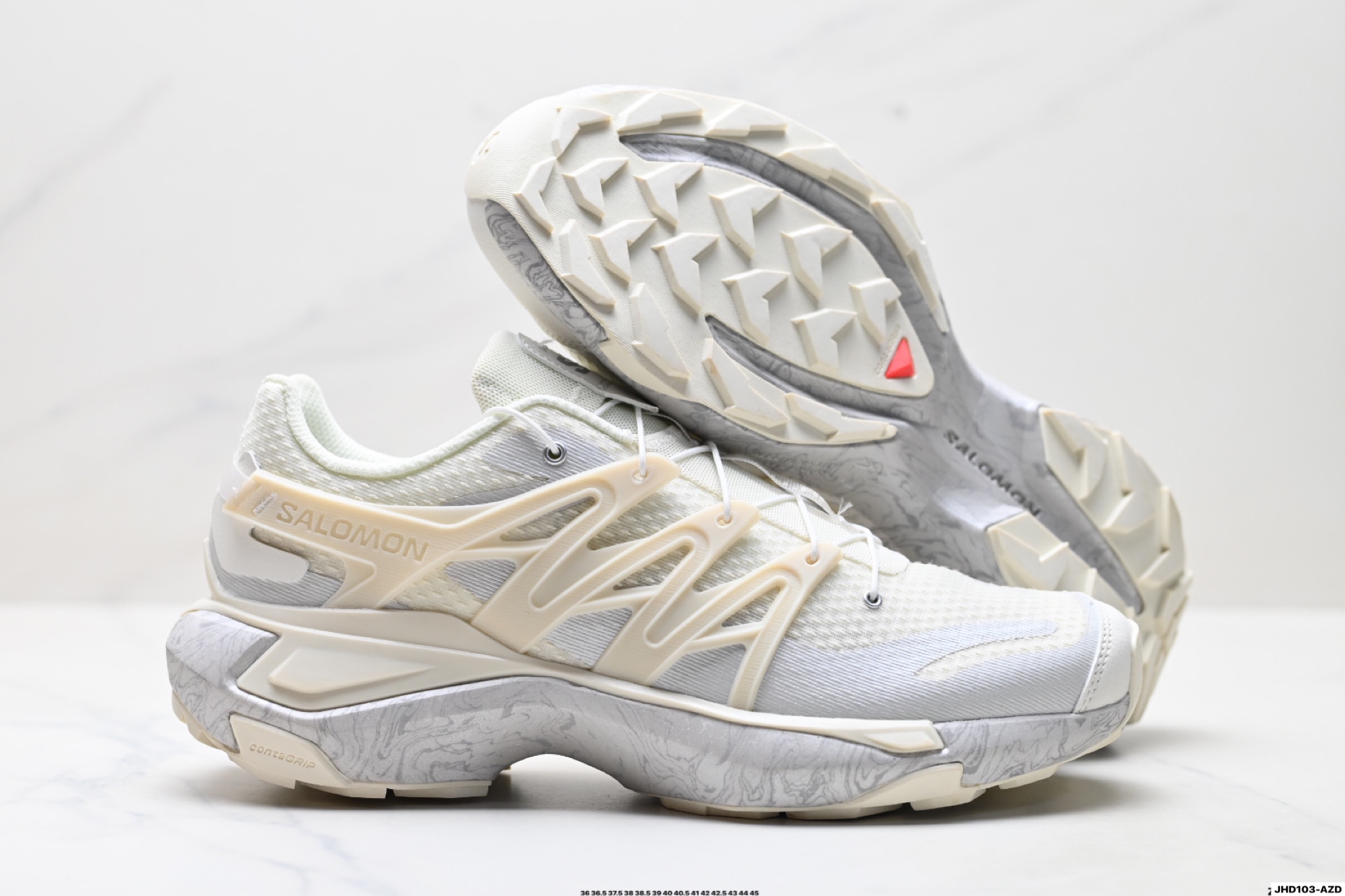 鞋底磨损区运用CONTAGRIP耐磨鞋材 后跟自然饱满还原包裹性 鞋面用SENSIFT贴合包裹脚型 鞋跟鞋底牵引设计抓地性 3D ADVANCED CHASSIS底盘轻量化 五层组合大底 钉齿设计稳定防护 Ortholite轻量化鞋垫