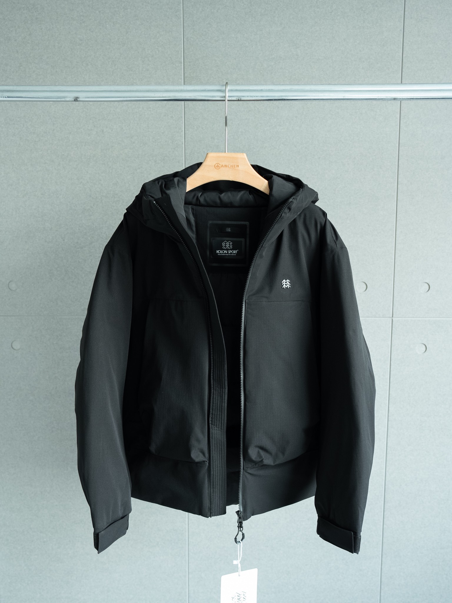原厂渠道 原版科技涂层防水面料 耐磨抗 填充物为白鹅绒充绒量300g 锁温蓬松 防水级别为国际ISO标准90 ISO4 达到荷叶水珠滚动效果 整件衣服都是大厂缝纫出货 做到0线头 次品率百分之3的外贸出口的质检标准 胸口的可隆双树logo采用铜合金金属开模定制而成 原版一致的图形大小 五金拉链都带有可隆家的双树logo和字母图形 光一个领标就采用了高温压烫工艺和特种机走线工艺完美还原 两侧口袋内里都带有绒布 冬天更加暖和舒适 带有定织的可隆字母织带 整件衣服的工艺含量非常高 面料基本可以做到不粘油污 所以可以达到免洗级别了 十星牛货