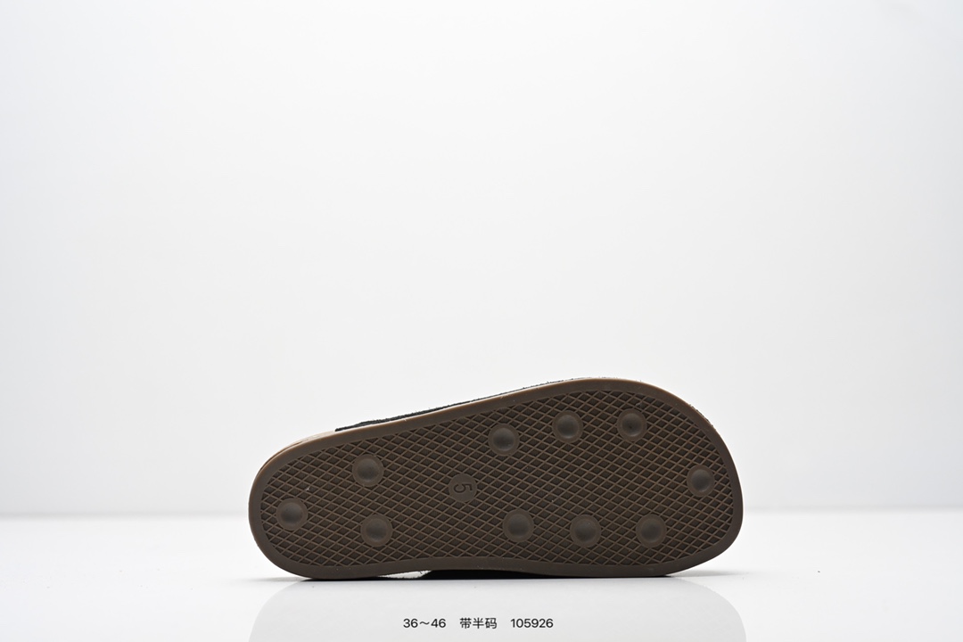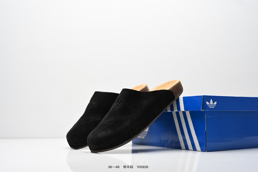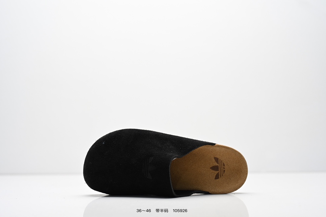 公司级 Adidas Originals Adimule 阿迪达斯 百搭舒适 橡胶底 防磨包头拖鞋 采用柔软牛皮绒面 皮毛一体鞋面材质 中底鞋床搭载波状外形缓震软木橡胶 货号 JS0705 尺码 36 46半 ID 105926