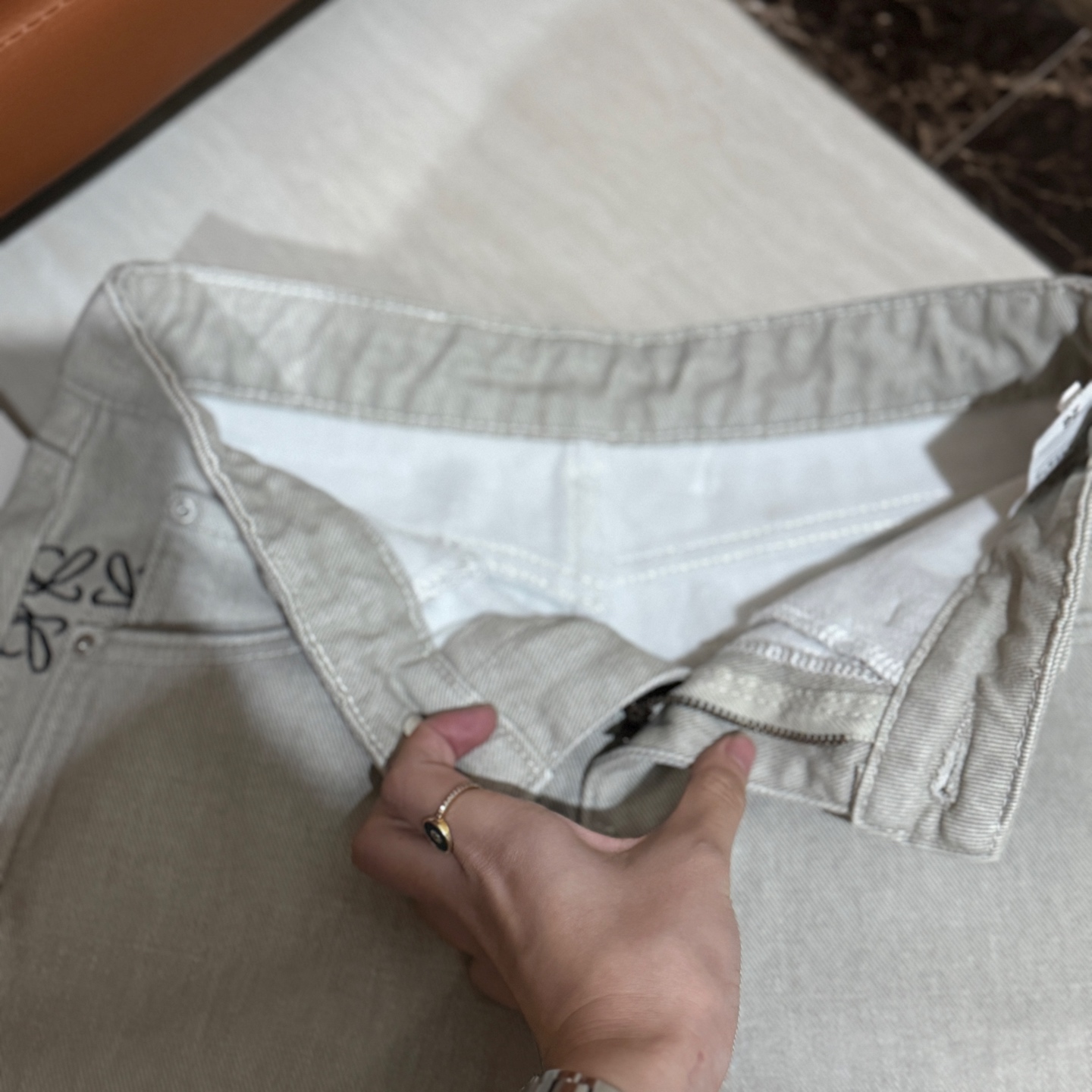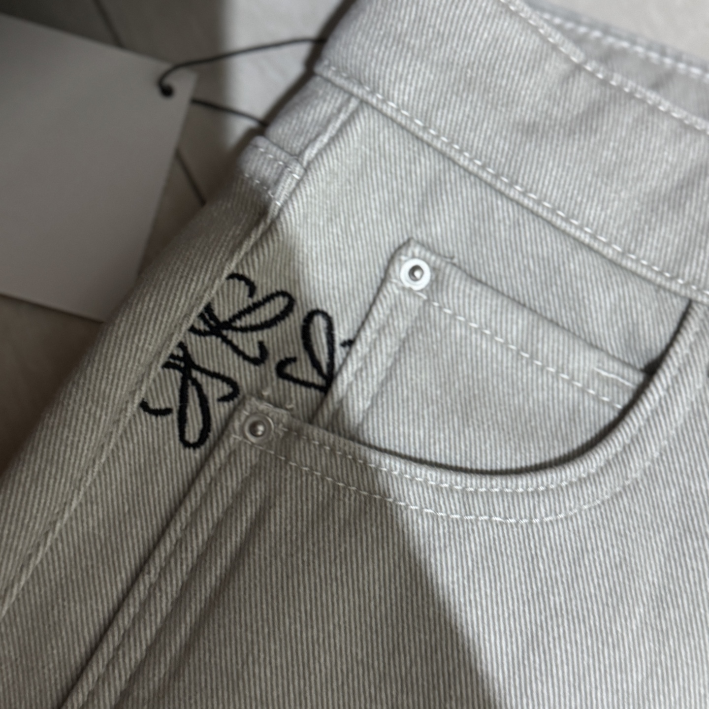 细节是点睛之笔 口袋旁的刺绣小图案自带精致感 后腰皮质标贴高级感拉满 内里绒面软乎乎 贴腿穿像裹了层云朵