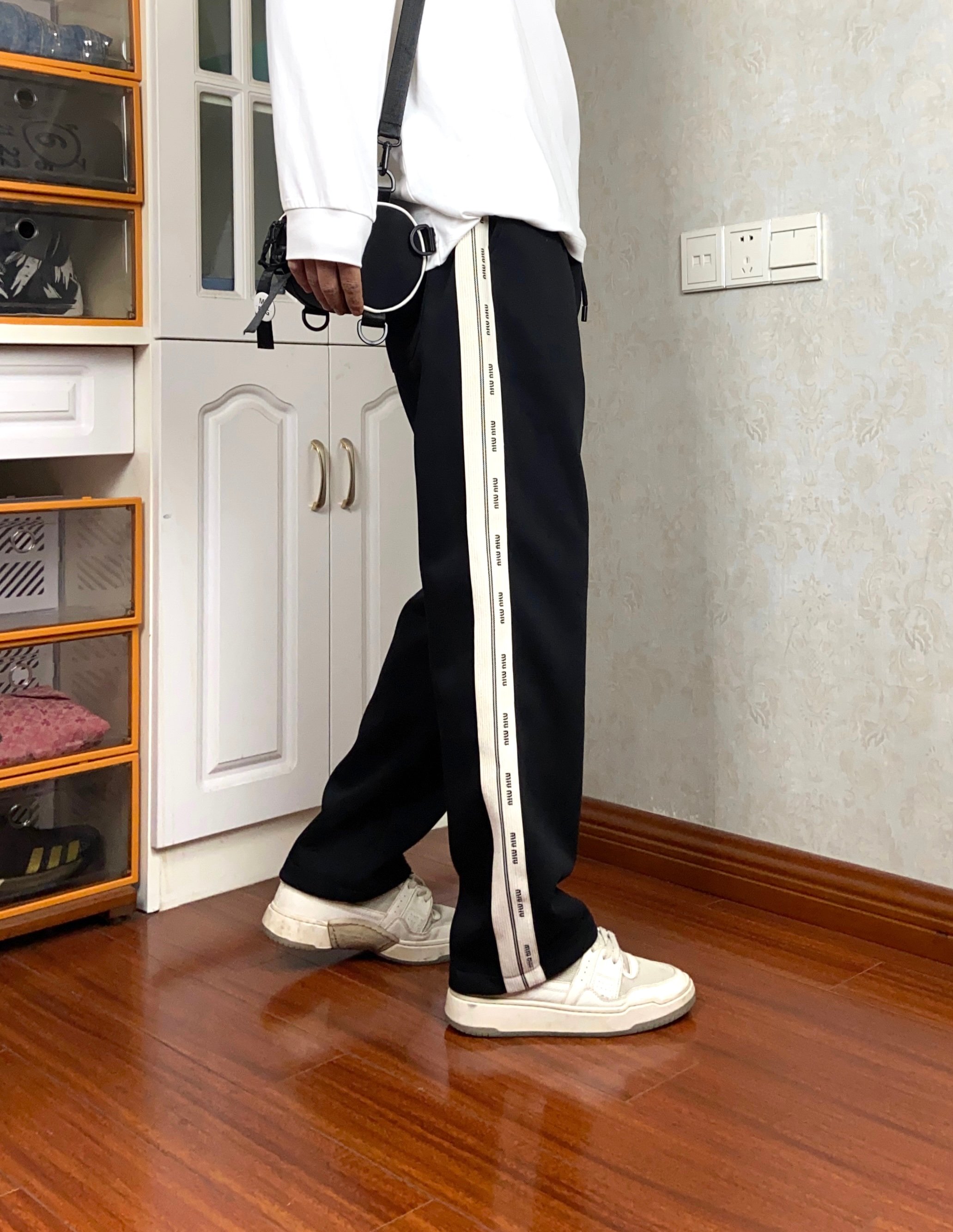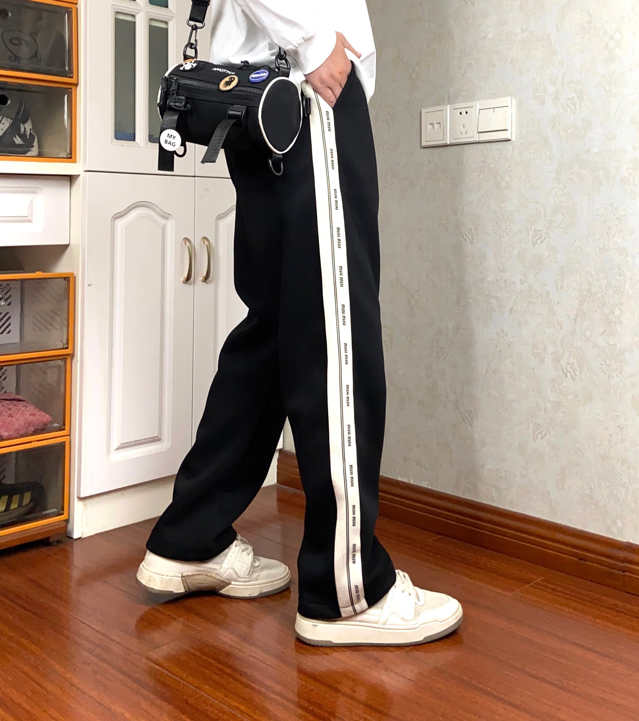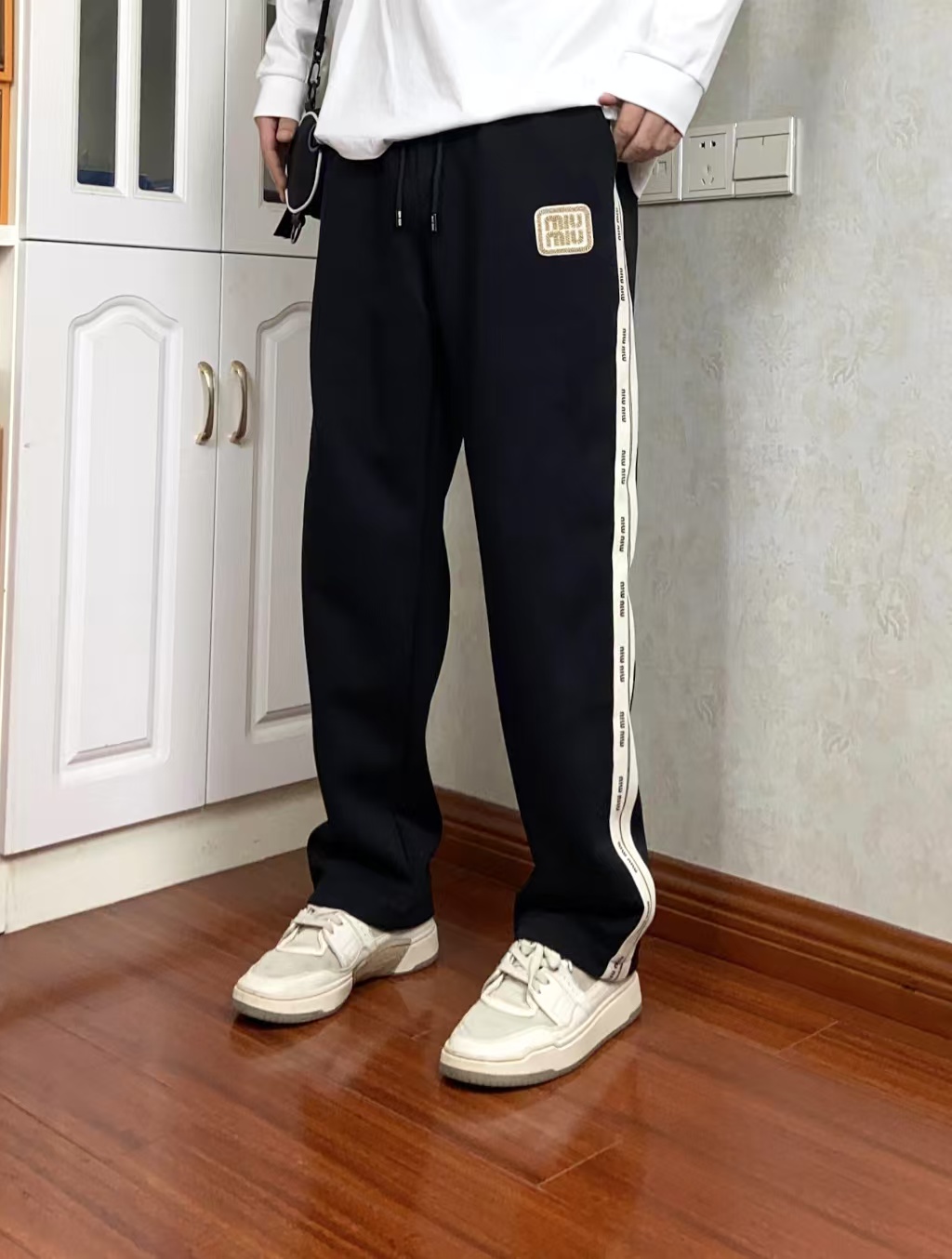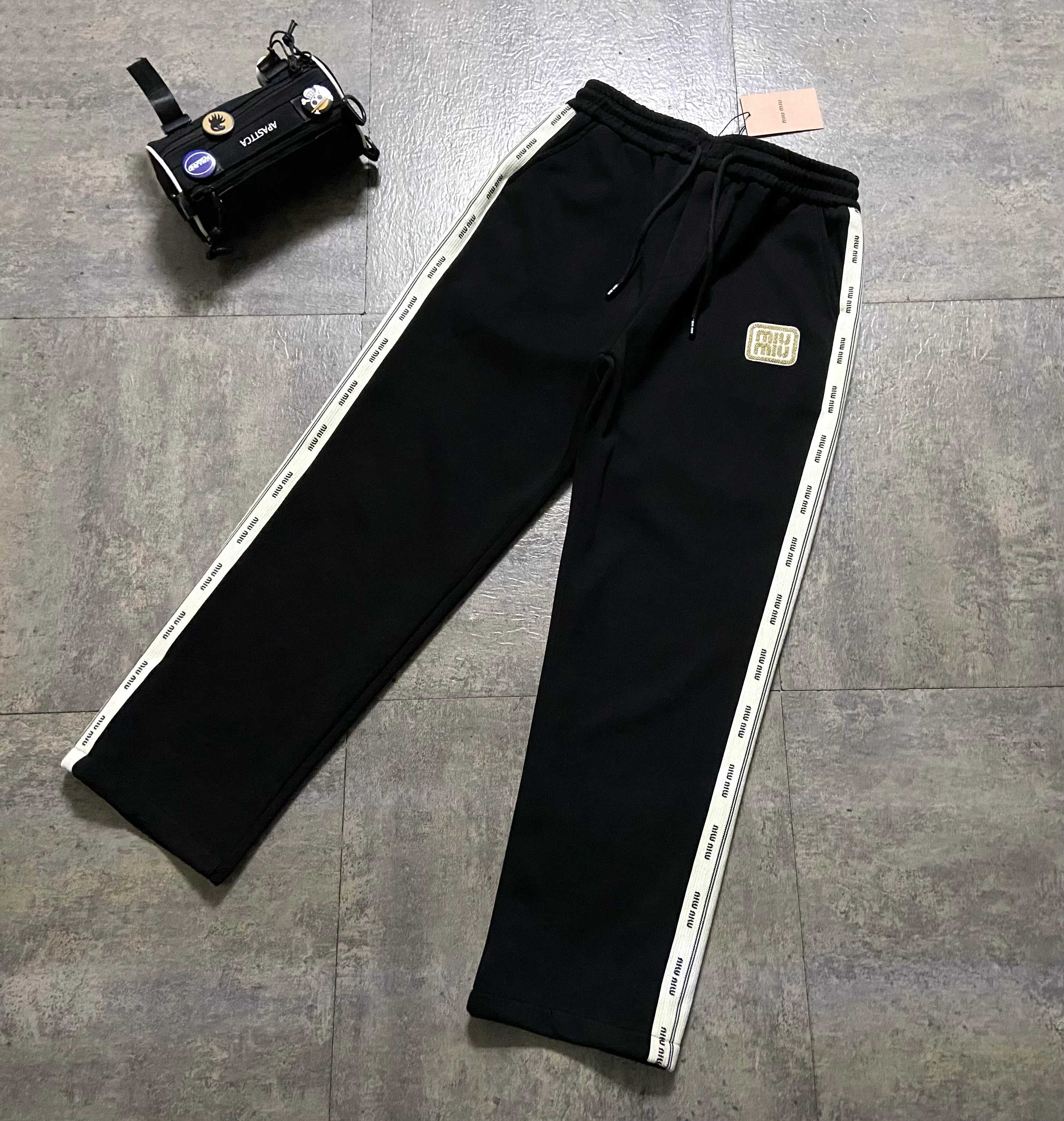 120196352 - 高品质 Miu Miu冬季新款字母织带情侣款加厚长裤 宽松版 403997