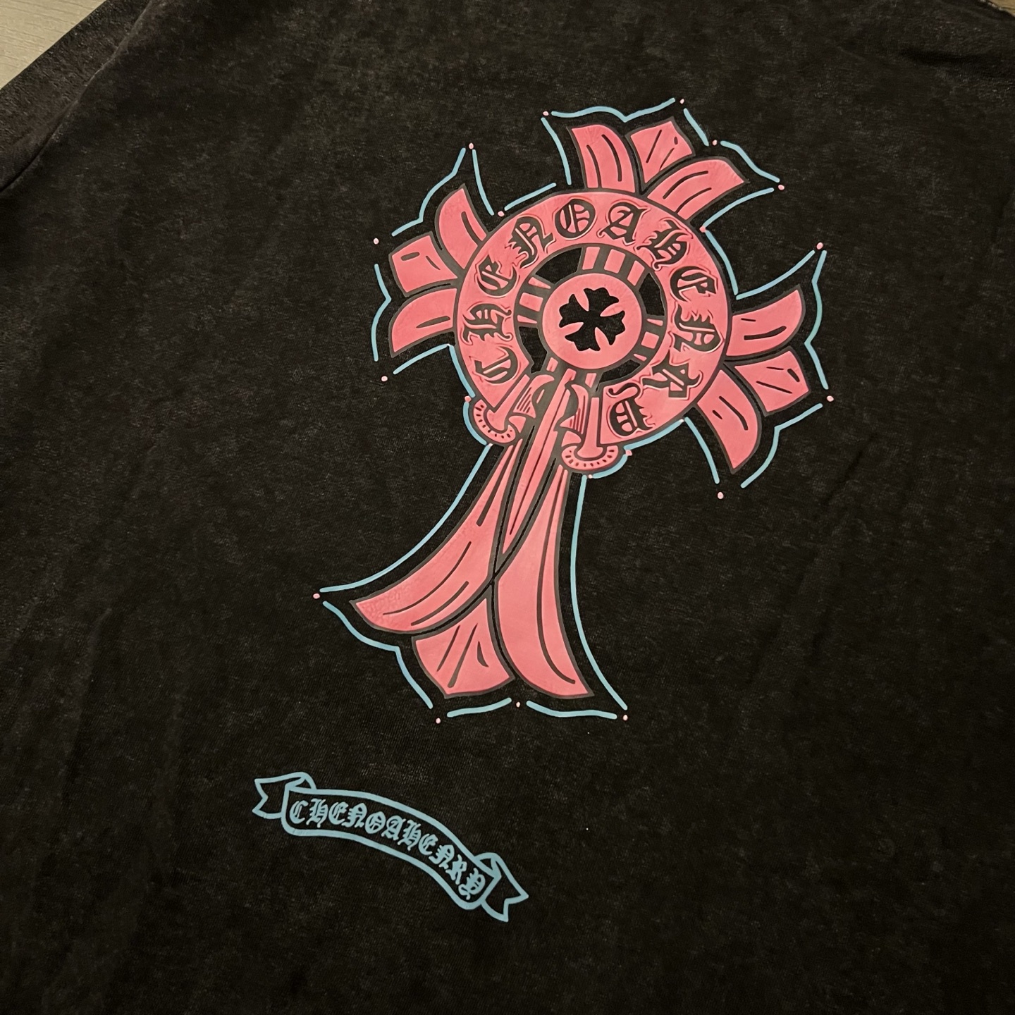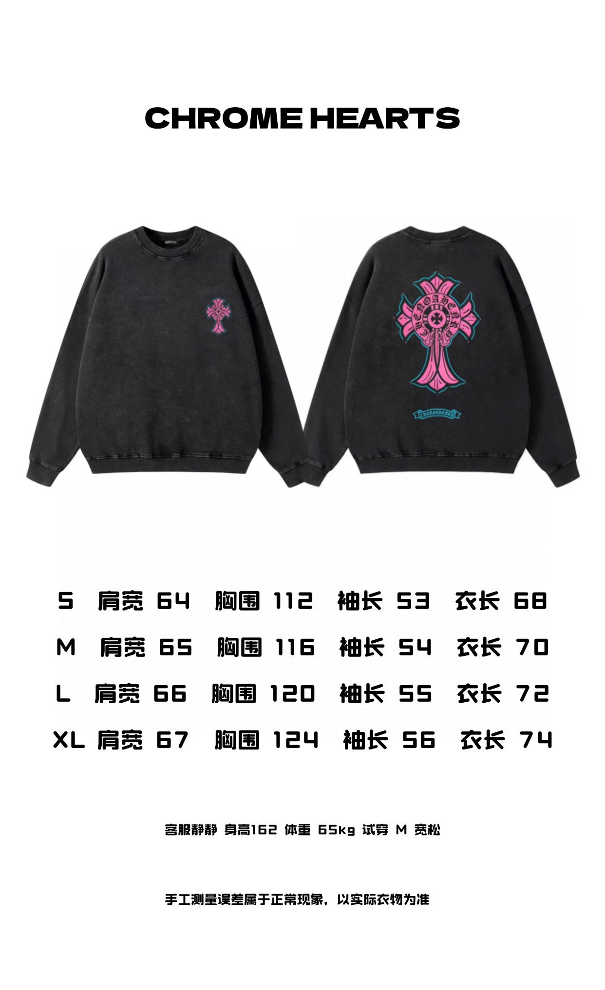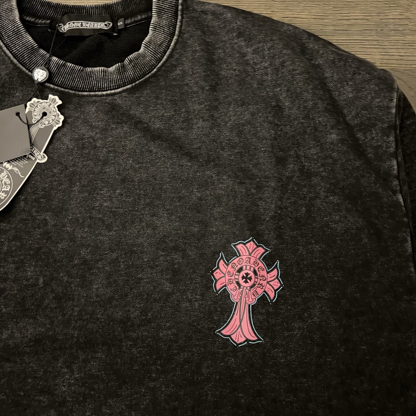 Chrome Hearts CH 克罗心 粉色十字架印花做旧情侣圆领卫衣 顶级版本