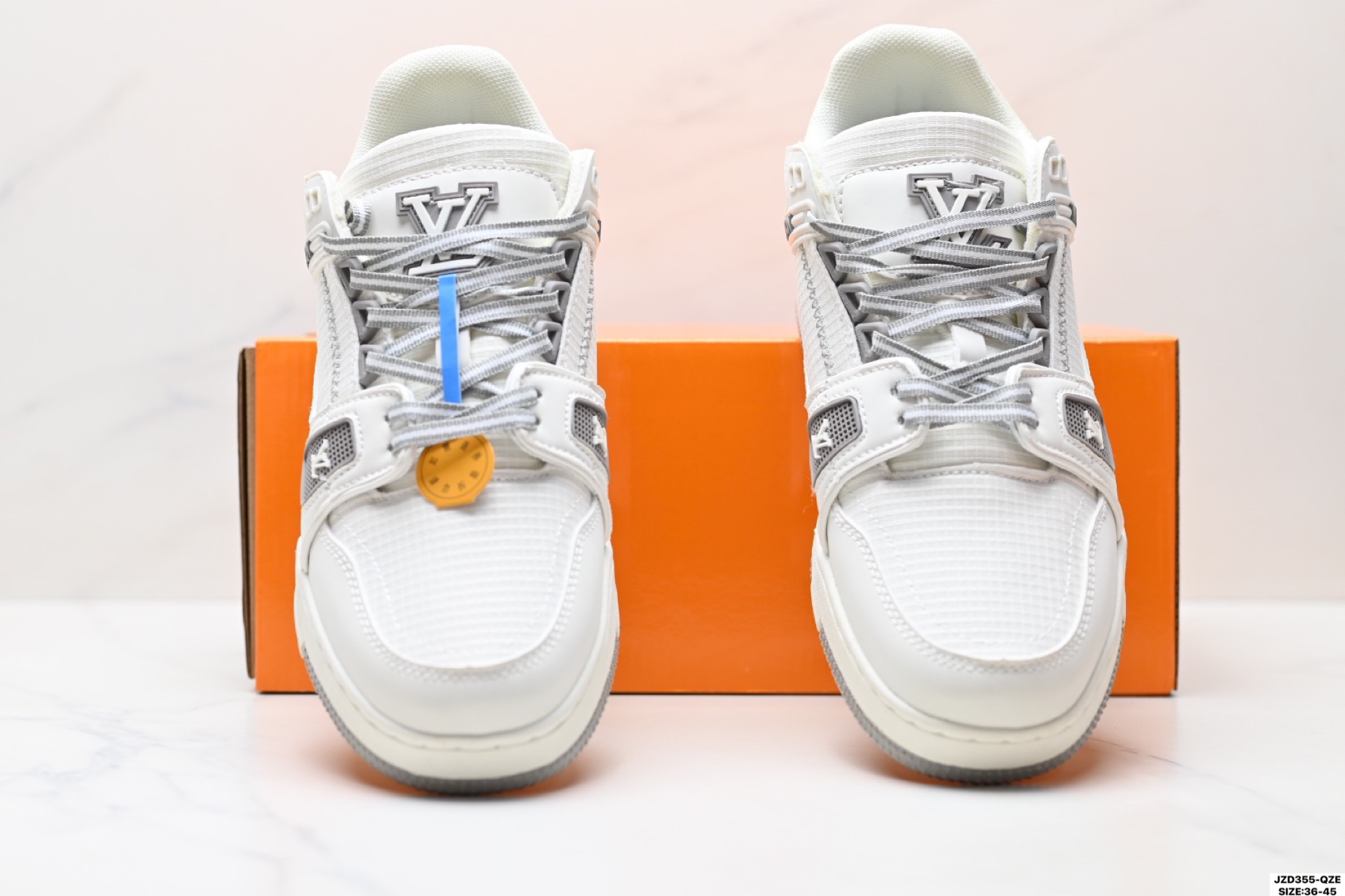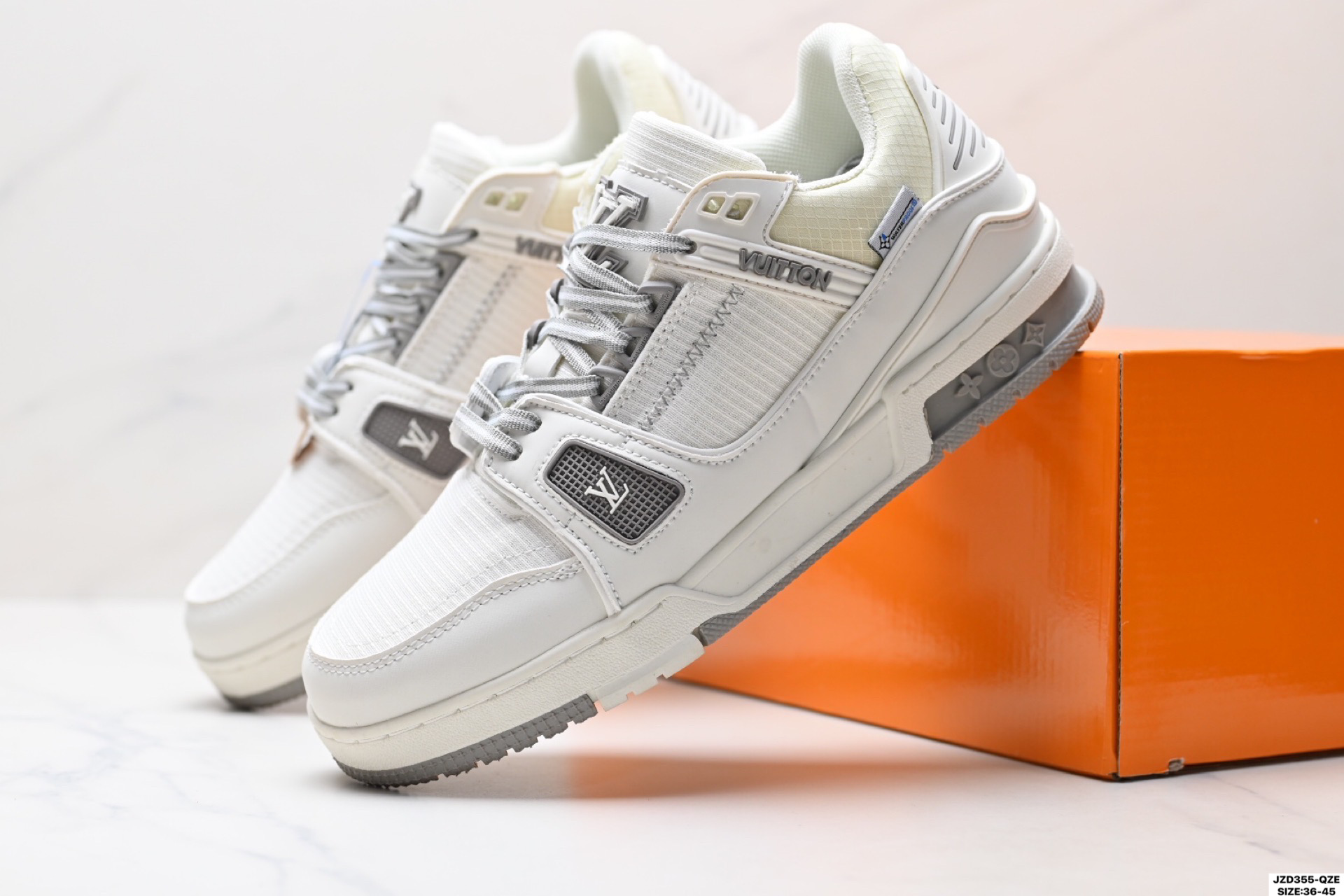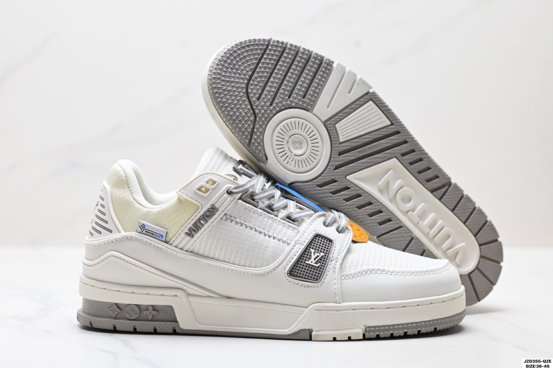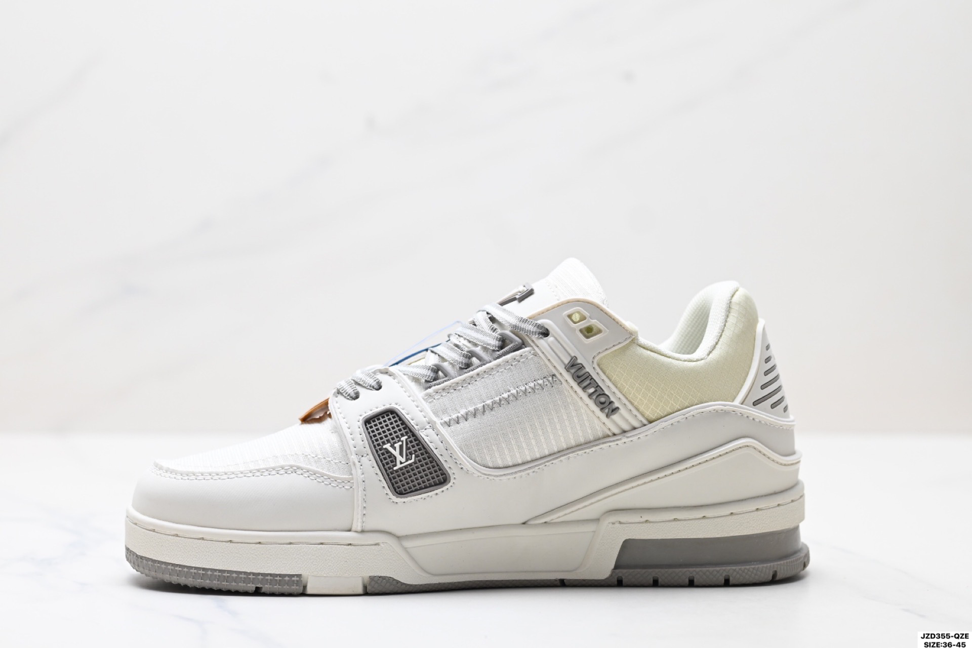 全新 Sneaker Lo 公司级路易威登板鞋 一代 经典款 官方一比一版本 新款 LV Tyler x LOUIS VUITTON Trainer 1 0 帆布拼接皮面 圆头系带 低帮 板鞋 圆头系带低帮生活休闲鞋男女款 LV Trainer最新配色 L家 篮球鞋风格运动鞋 该鞋由艺术总监 VIRGIL ABLOH设计 垫脚聚米微料加透气英伦风 细节原版一致 Size 39 45 36 45