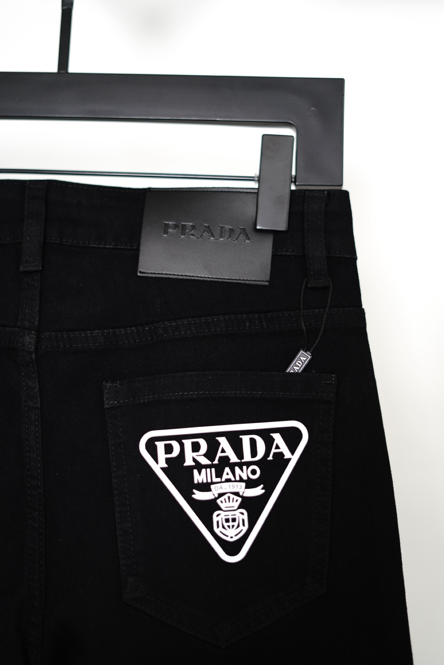 款号 M2220 普拉达三角标牛仔裤2026最新品 专柜同步有售 原单狠货 水洗休闲牛仔裤 进口原版水洗弹力面料 舒适有弹性 原版五金辅料装饰logo 版型超正 档次极高 专柜品质 上身时尚有型 定制纽扣 拉链 辅料全套一比一开模定制 颜色 黑色 尺码 28 30 32 34 36 s xxl