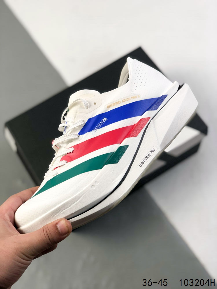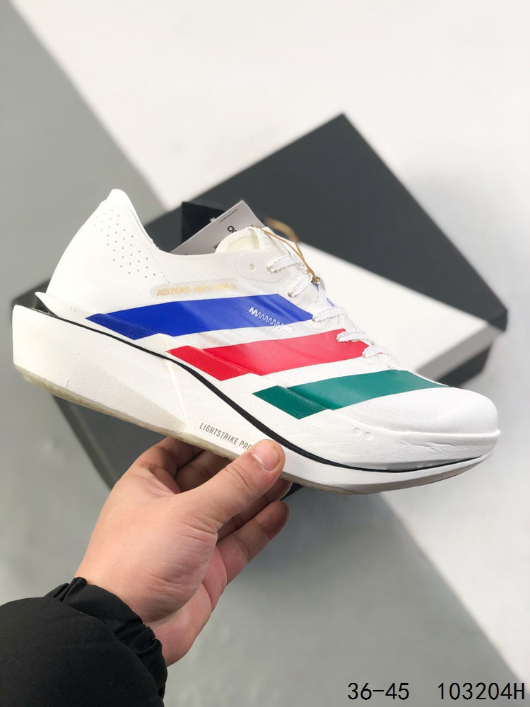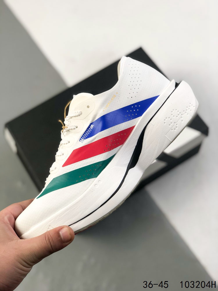 阿迪达斯 ADIDAS ADIZERO 5 0 运动舒适防滑耐磨 低帮跑步鞋 阿迪达斯革新力作 破纪录轻跑鞋 adiZero Adios Pro EVO 极致轻盈的Lightweight Upper设计 带来近乎裸足的舒适体验 中底采用尖端科技 Lightstrike Pro材料经过精细调校 实现卓越缓震与轻量化的完美结合
