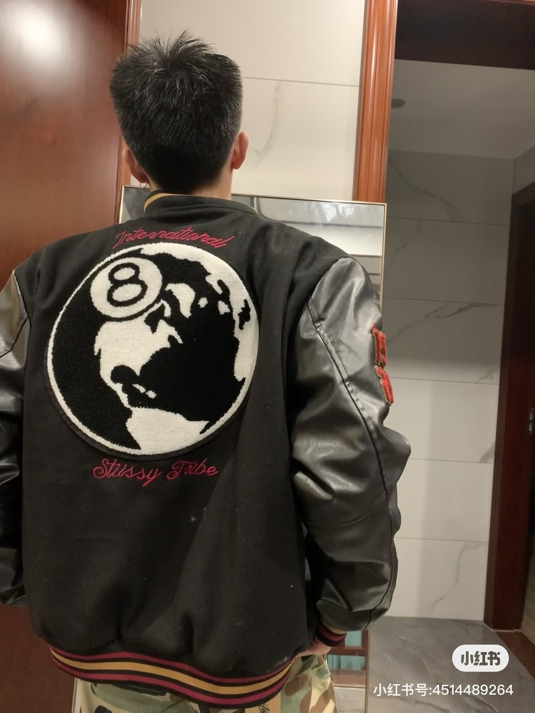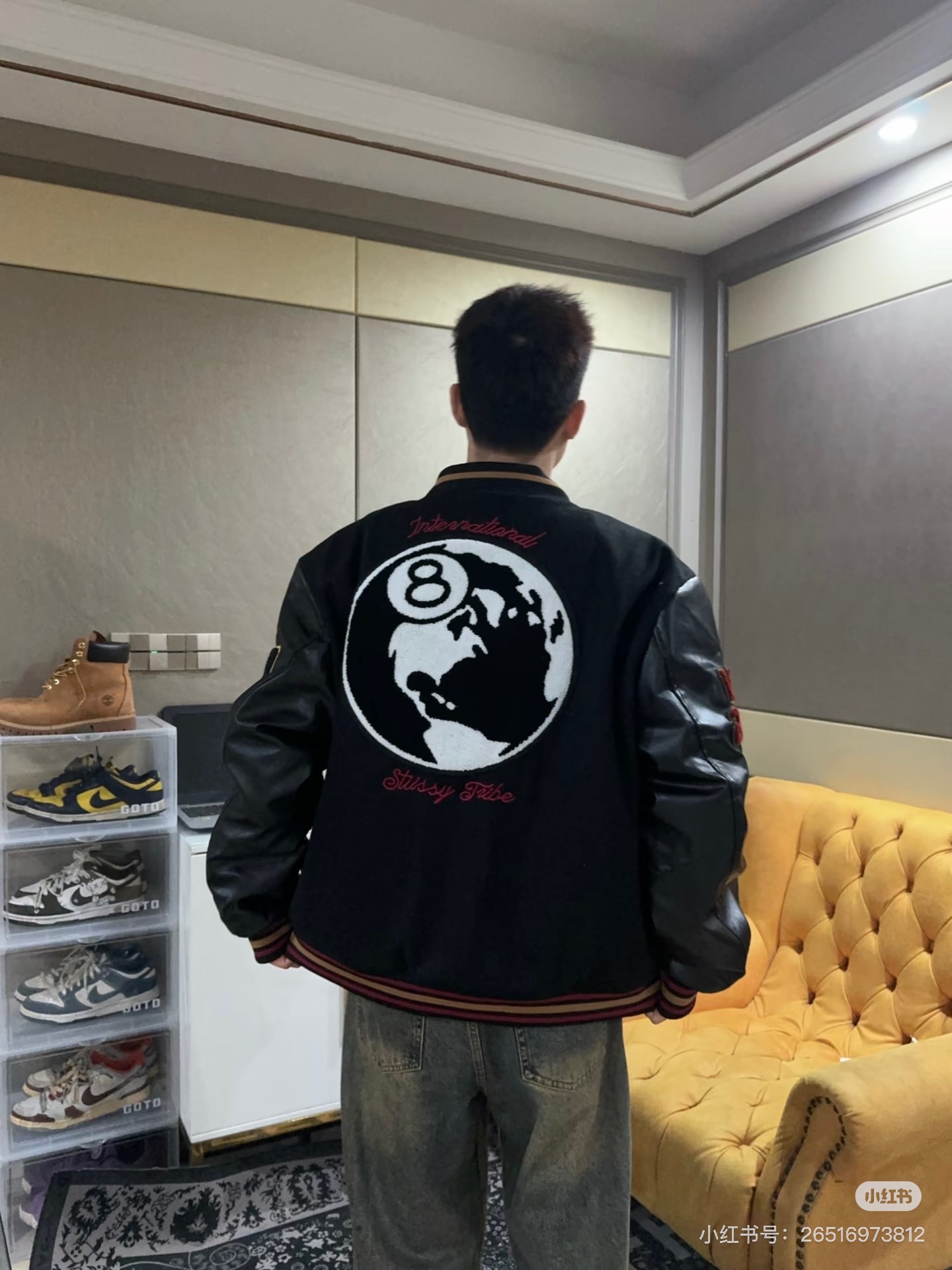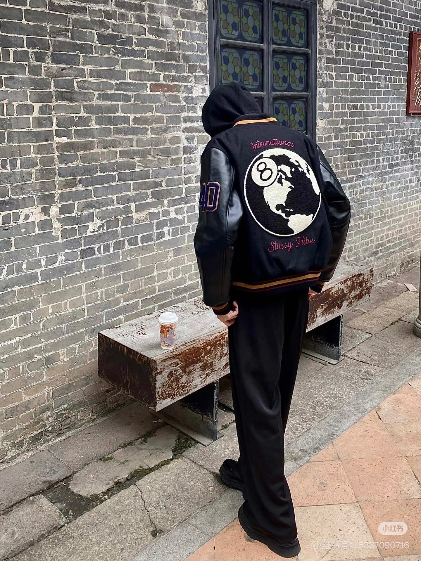 STUSSY斯图西 40周年限定黑8毛巾绣棒球服外套