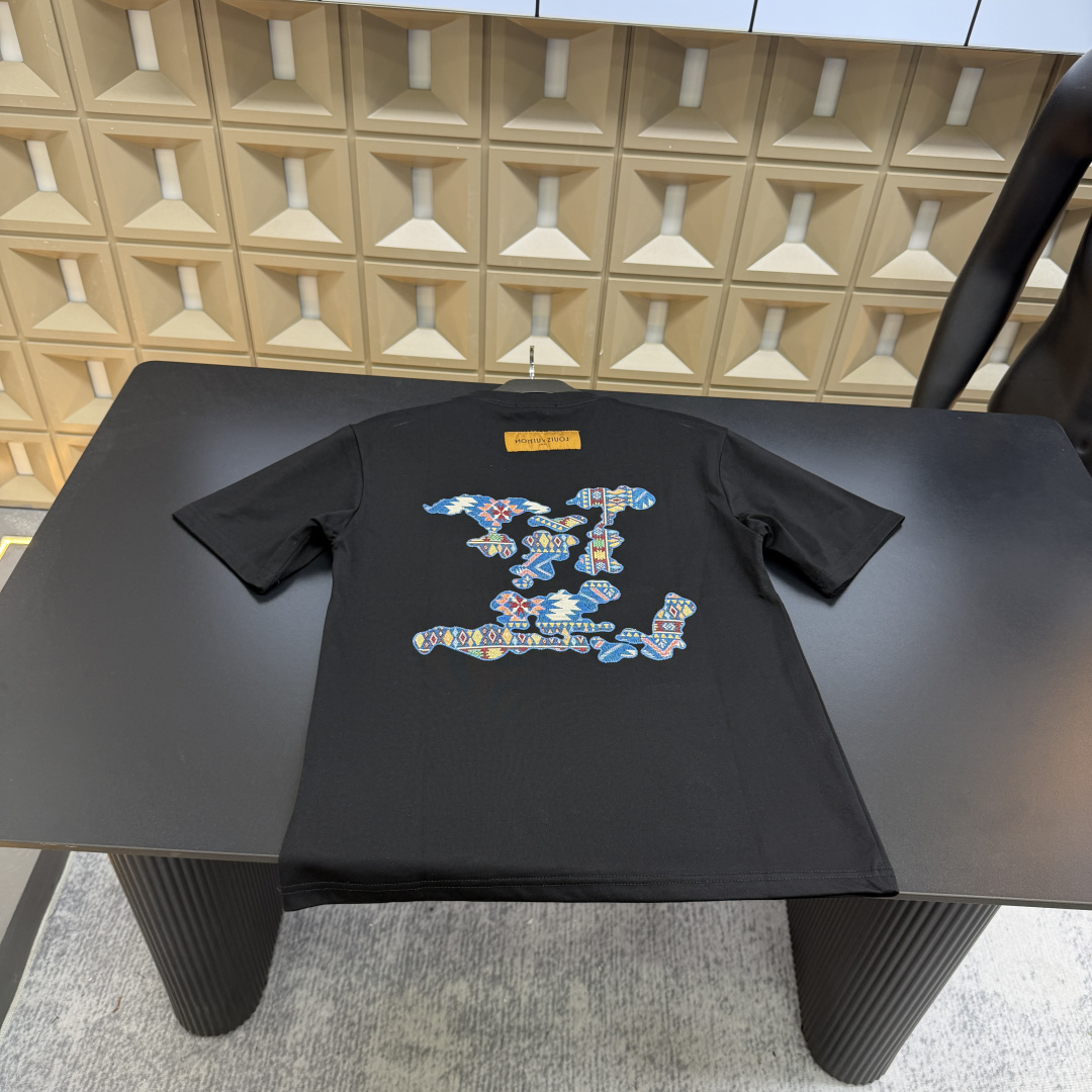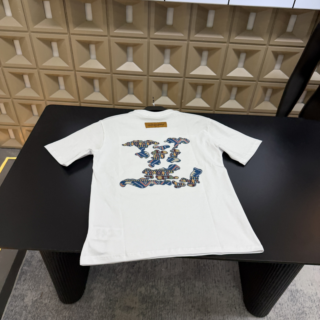春夏新款上新爆炸输出 Lv路易威登 T恤短袖 胸前刺绣字母Logo 后背拼接图案大字母 三标齐全官网一致 放大看细节原相机实物拍摄