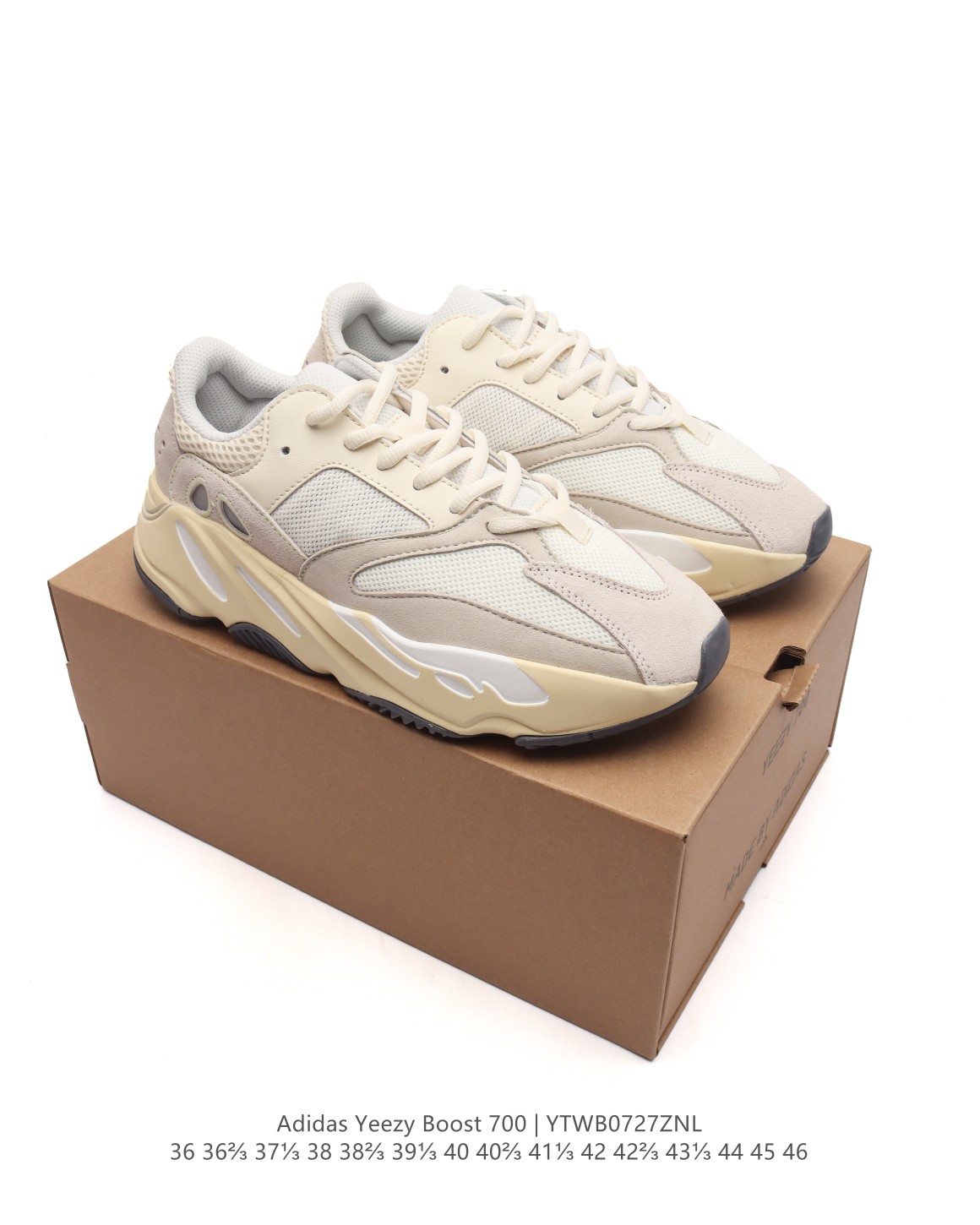 阿迪达斯 Adidas Yeezy Boost 椰子 700 限量3m休闲运动跑步鞋复古老爹鞋 鞋面由皮革和绒面革打造 部分网眼面料的使用提供了透气性结构和舒适脚感 TPU 中底具有石洗处理效果 呈现特别外观 嵌入式中底的 BOOST 材质则提供了良好的缓震效果 打造舒适穿着体验