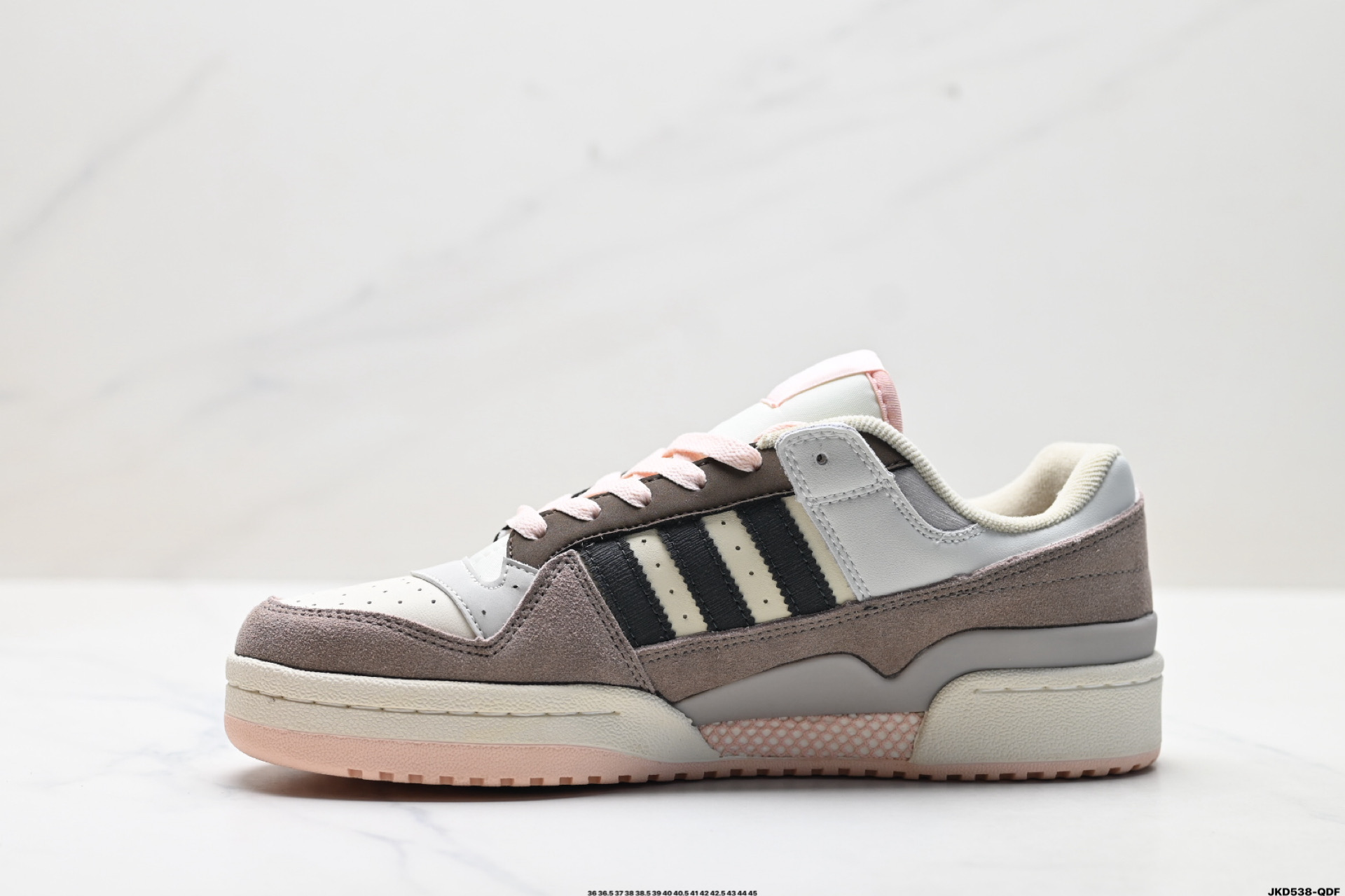 以复古篮球鞋的外形为基础 采用皮革拼接 简约百搭 更加贴合舒适 中底内侧网格造型起到点睛之笔 外底橡胶 更显复古