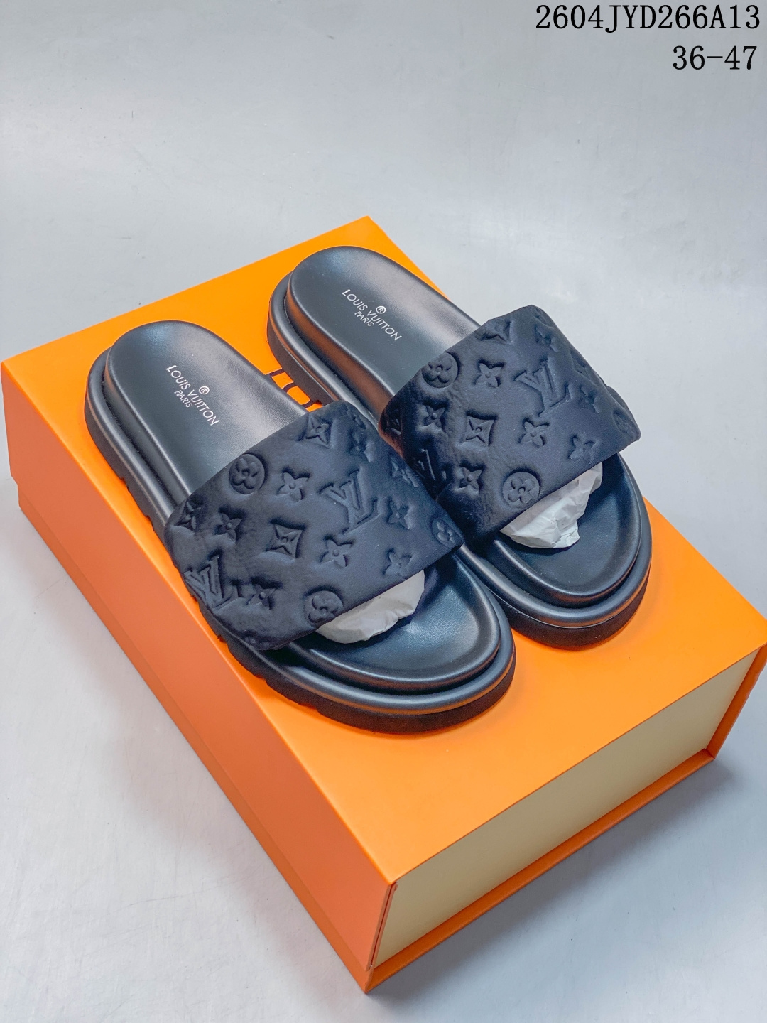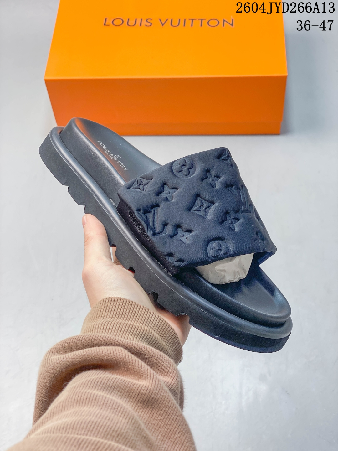 LOUIS VUITTON Pool Pillow Comfort 凹面印花花纹 羽绒拖鞋 女款 黑色