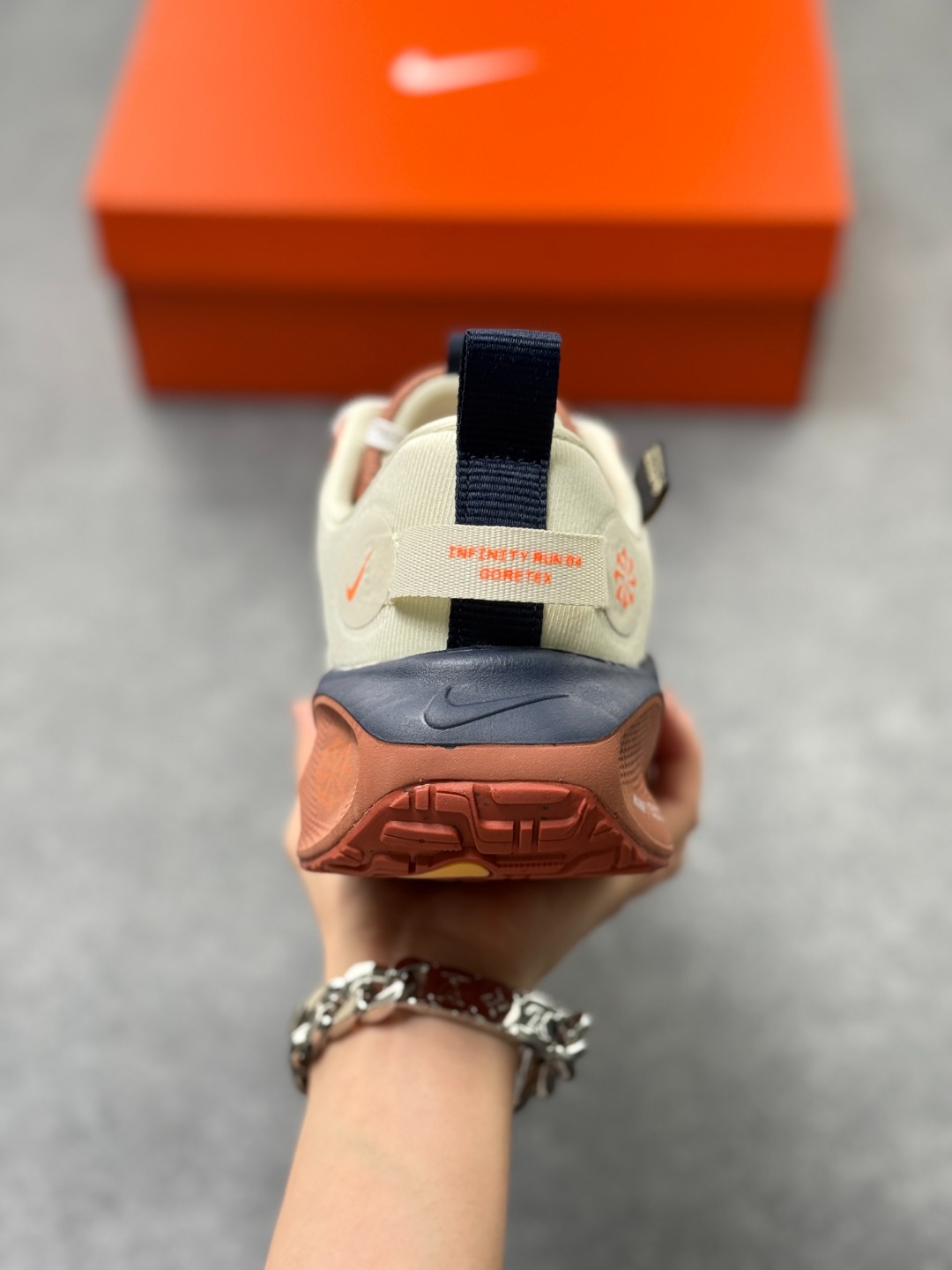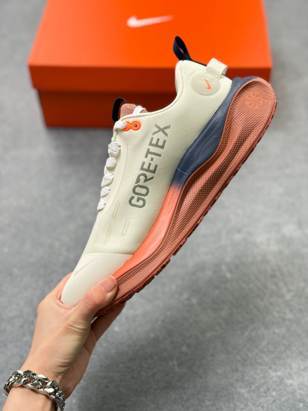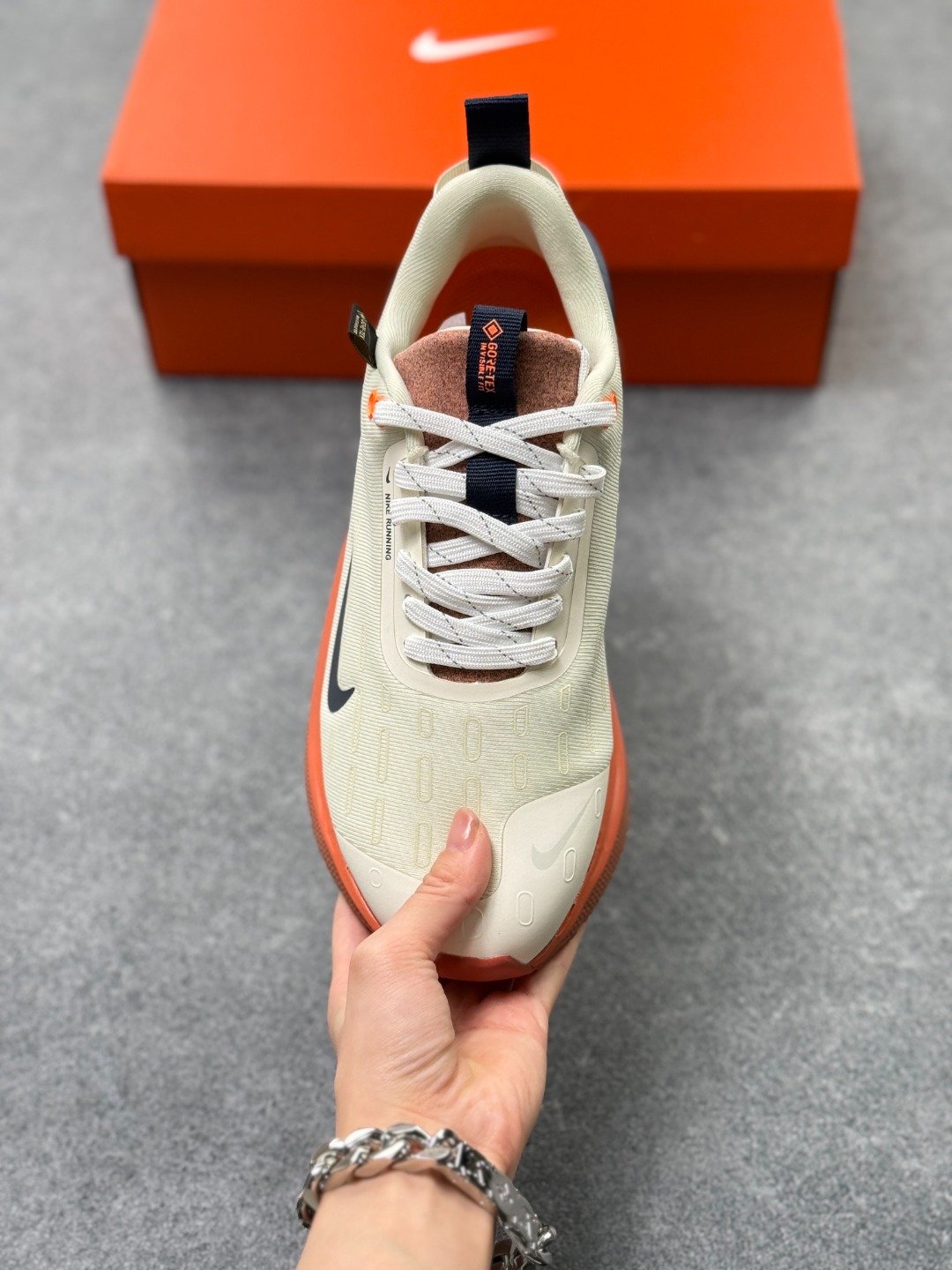 细节设计 采用Flyknit材质鞋面 结合Gore Tex防水材质 既保证了鞋子的轻盈感 又具备良好的防水性能 同时 鞋身可能带有反光细节 提升在低光照环境下的可见度