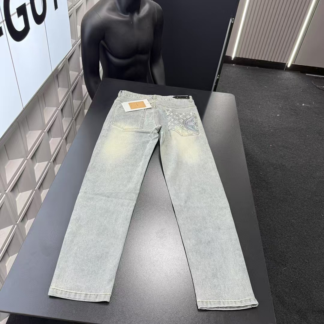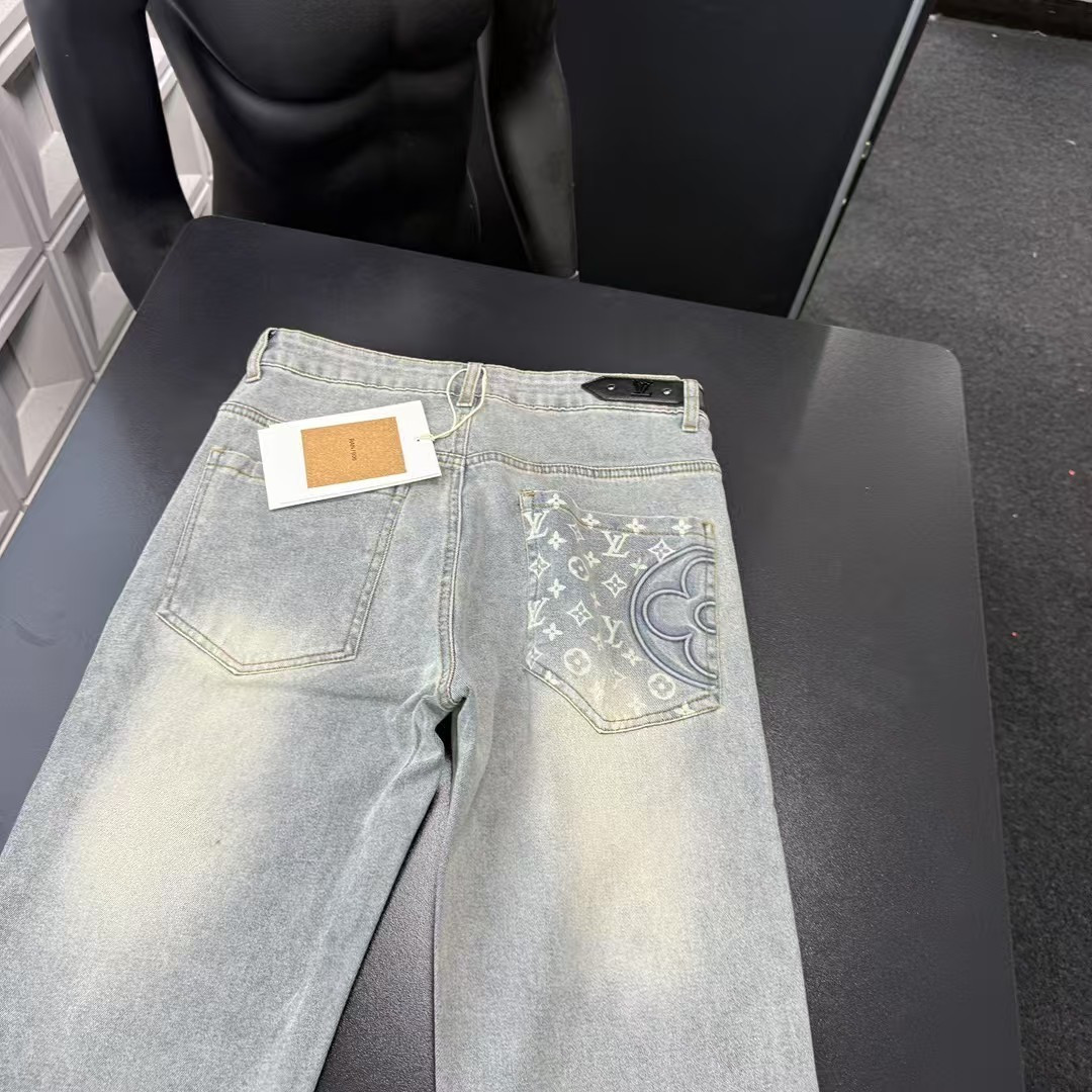 此款式售后到明年 秋季热销款推荐Lv路易威登口袋满印半花立体牛仔裤 三标齐全官网一致 放大看细节原相机实物拍摄 颜色 浅蓝色 尺码 L 4xl L 80 105斤 XL 105 120斤 2XL 120 140斤 3XL 140 160斤 4XL 160 180斤