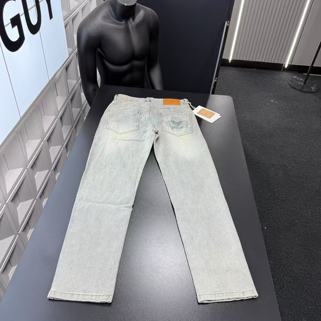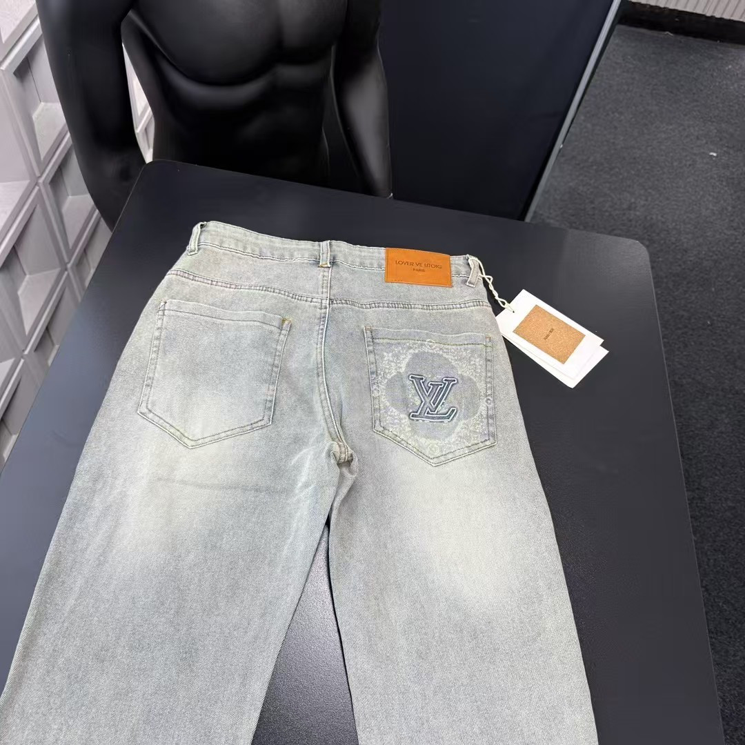 此款售后不停 秋季热销款推荐Lv路易威登口袋刺绣字母牛仔裤 三标齐全官网一致 放大看细节原相机实物拍摄