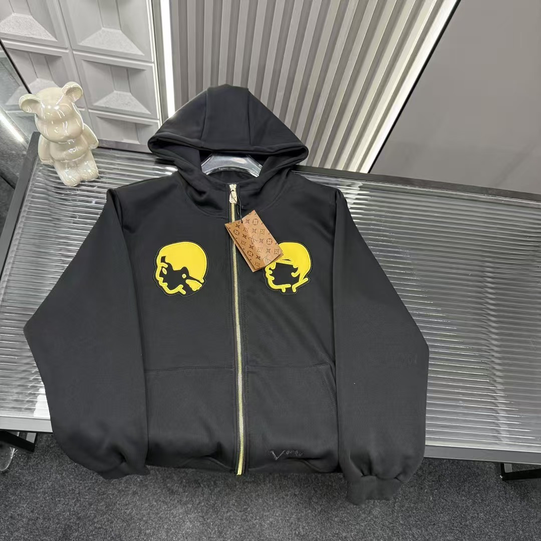 此款式售后到明年 秋季热销款推荐Lv路易威登胸前贴皮刺绣图案连帽外套 三标齐全官网一致 放大看细节原相机实物拍摄 颜色 黑色 尺码 L 4xl L 80 105斤 XL 105 120斤 2XL 120 140斤 3XL 140 160斤 4XL 160 180斤
