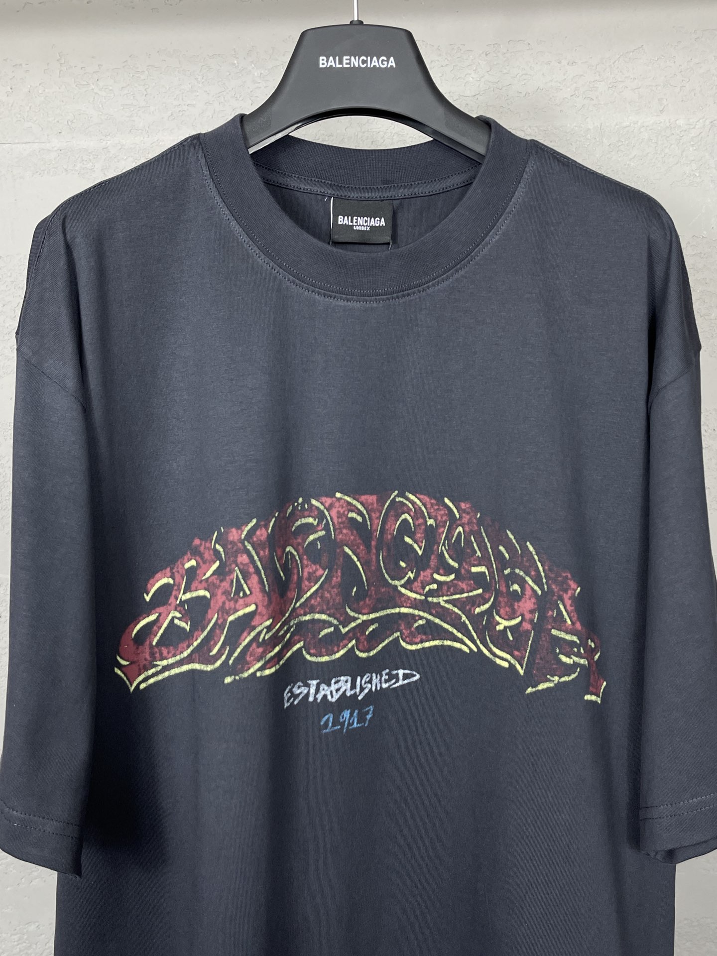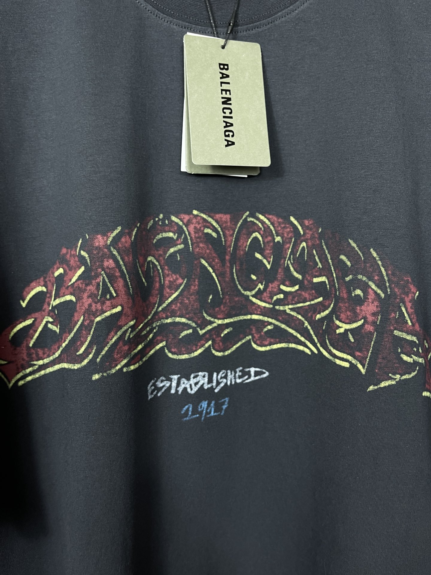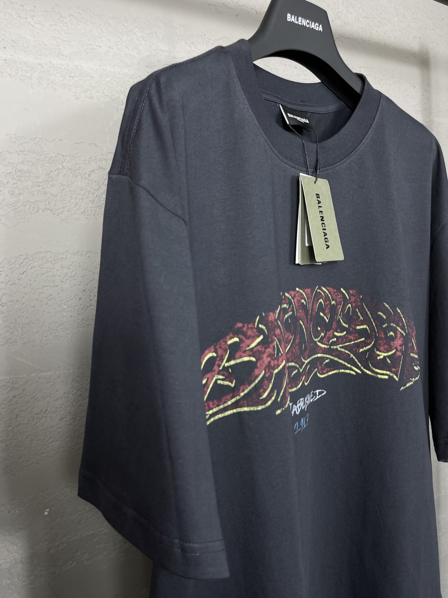 实拍图 顶级版本 官网品质 BALENCI GA 巴黎 2024最新火焰涂鸦直喷印花短袖T恤 砖柜同步 区别市场通货 YB开发 面料采用巴黎ZP定织定染全棉双纱紧密棉 克重260克 布面干净 布纹清晰 柔软舒适 螺纹釆用定染无色差 前后印花采用康丽机直喷印花版型釆用OS宽松落肩版型 男女同款