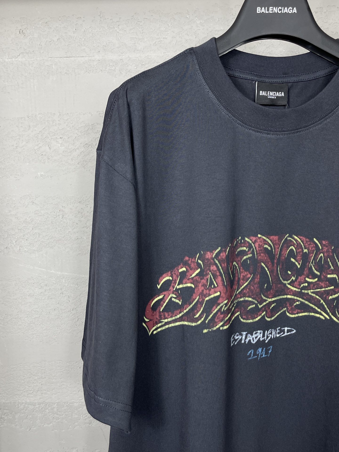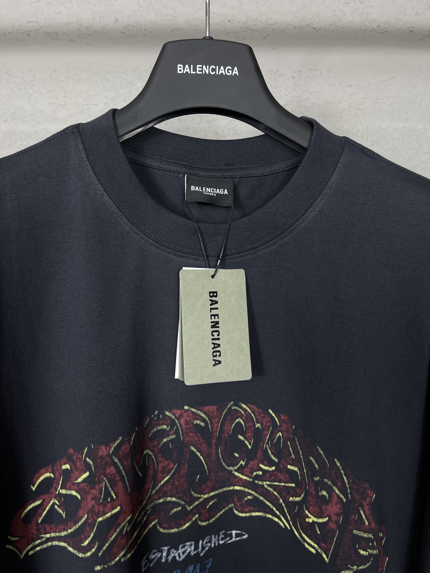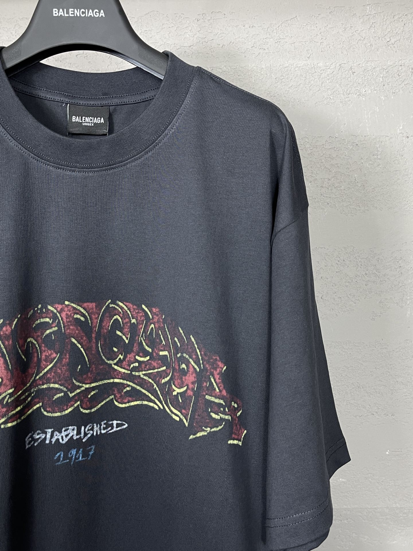 实拍图 顶级版本 官网品质 BALENCI GA 巴黎 2024最新火焰涂鸦直喷印花短袖T恤 砖柜同步 区别市场通货 YB开发 面料采用巴黎ZP定织定染全棉双纱紧密棉 克重260克 布面干净 布纹清晰 柔软舒适 螺纹釆用定染无色差 前后印花采用康丽机直喷印花版型釆用OS宽松落肩版型 男女同款
