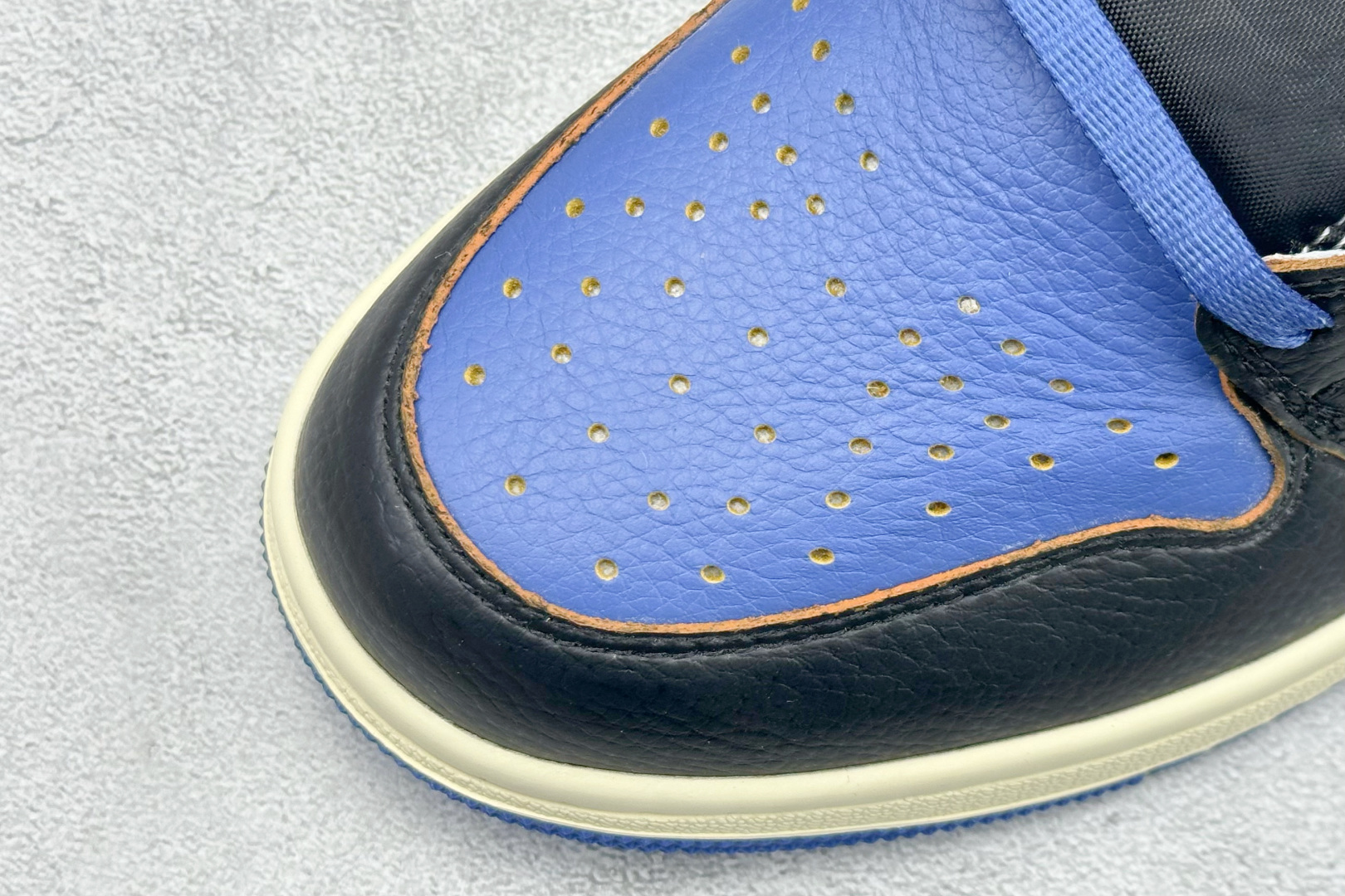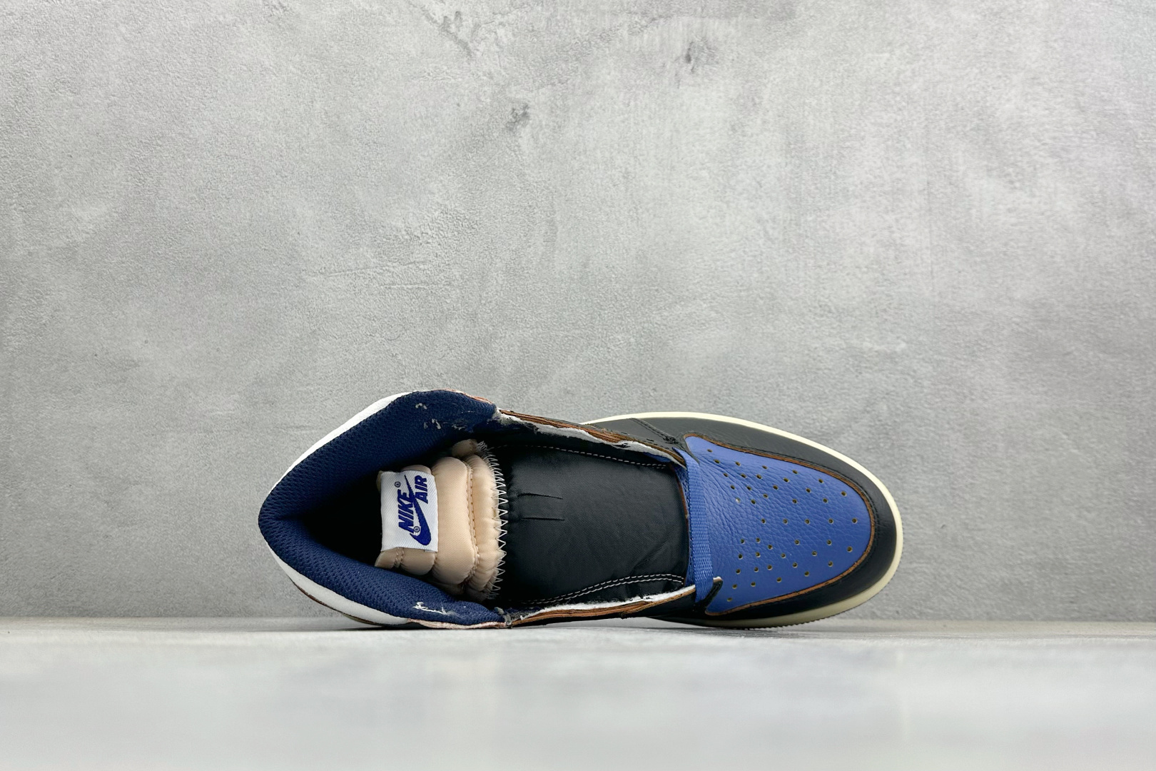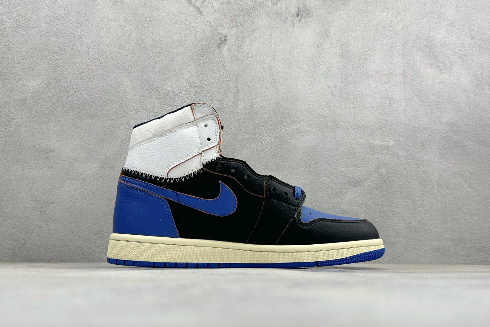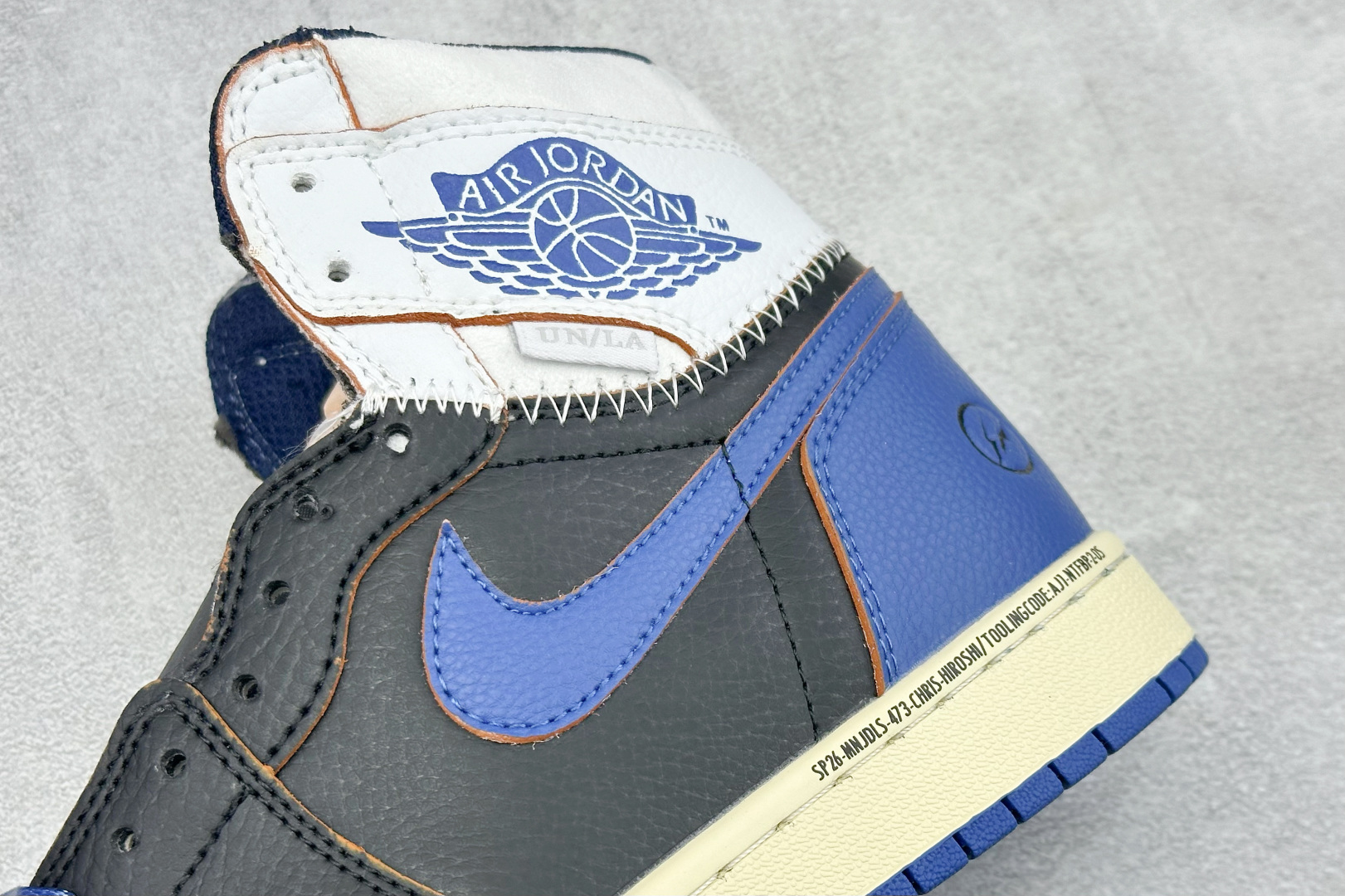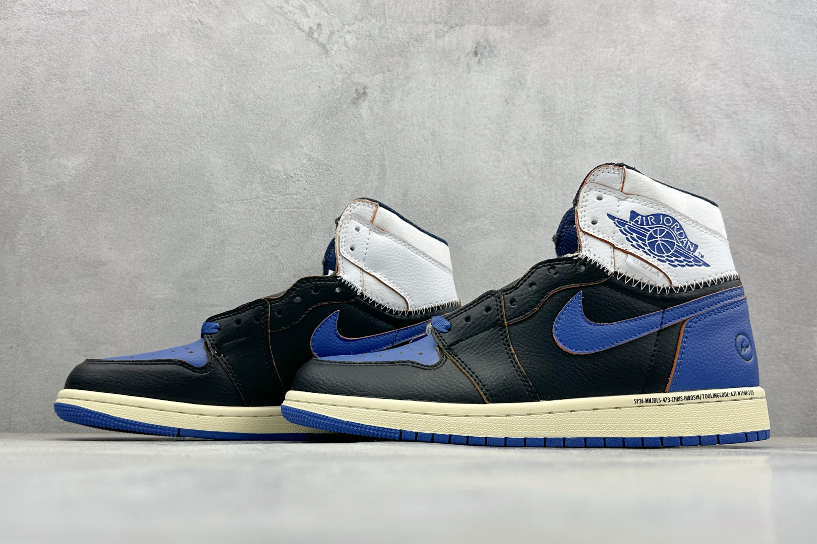 Fragment Design x Union x Air Jordan 1 Retro High Og Nrg 三方联名款 牛皮 舒适 防滑 高帮 复古篮球鞋 男女同款 蓝白拼接 Air Jordan 1于1985年推出 是耐克第一双以乔丹名字命名的篮球鞋 正是这双鞋 开启了一个时代 Air Jordan 1外形的灵感来自于在当年风靡一时的AirForce 1 同时降低中底厚度 减轻重量 增加贴地感 并采用了后掌Air Sole气垫和最经典的飞翼Logo来自于当时的Nike创意总监Peter Moore