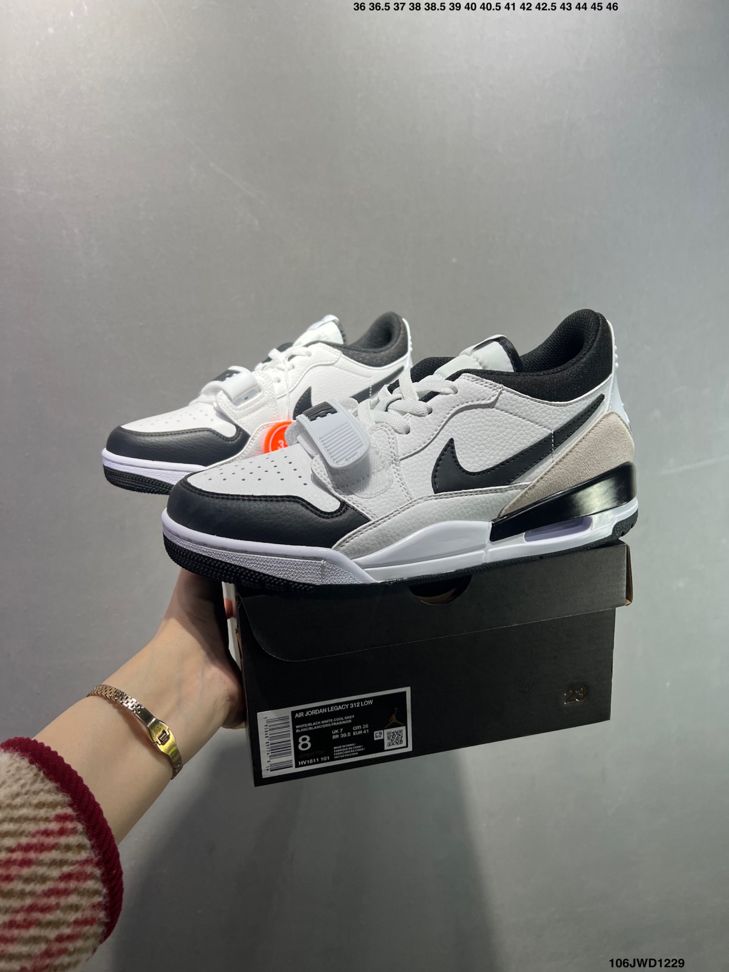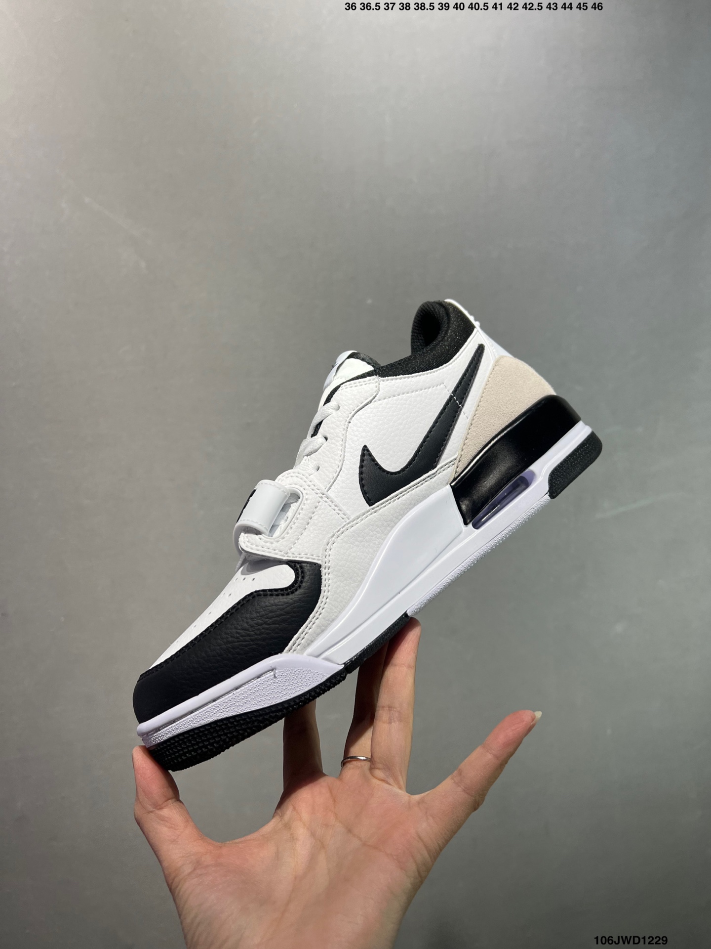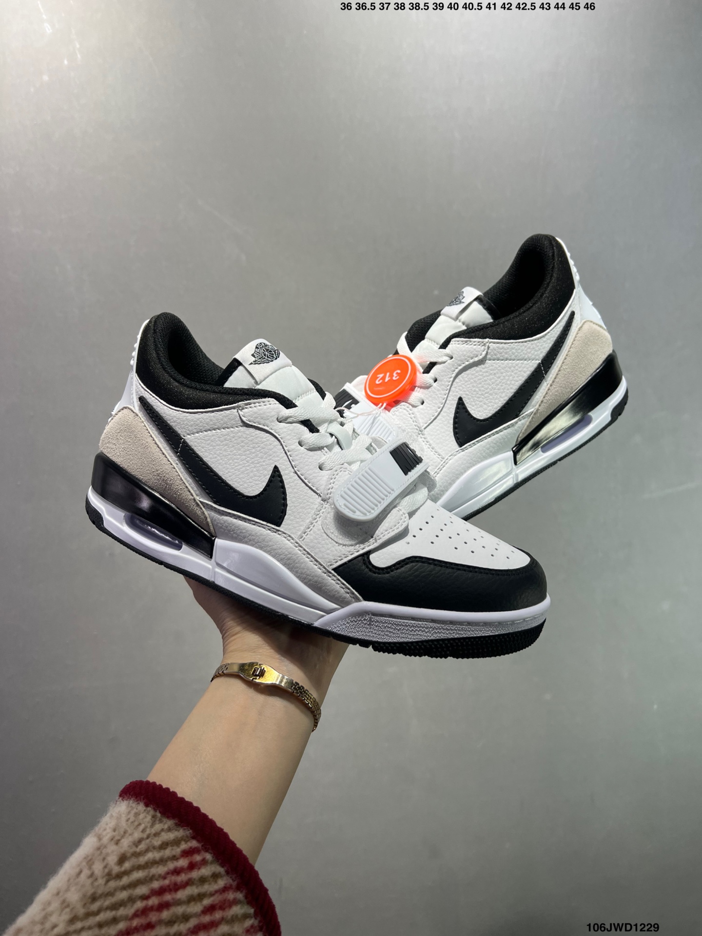 公司级耐克 Nike AJ312 Air Jordan Legacy 312 NRG Pure white 官方货号 CD7069 141乔丹联名号称 最强三合一 的 Jordan Legacy 312 自然有着杂交结合的设计 它的名字就展现出它所包含的鞋款元素 312 分别对应了 Air Jordan 3 Air Jordan 1 和 Air Trainer 2 将这三双经典又有不俗人气的鞋款融合 最强三合一 的名称由此得来 Size 36 44半码 ID 106JWD1229
