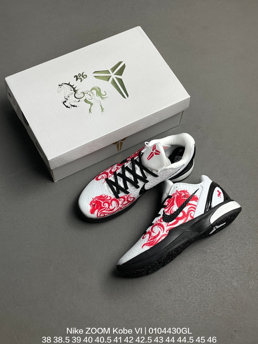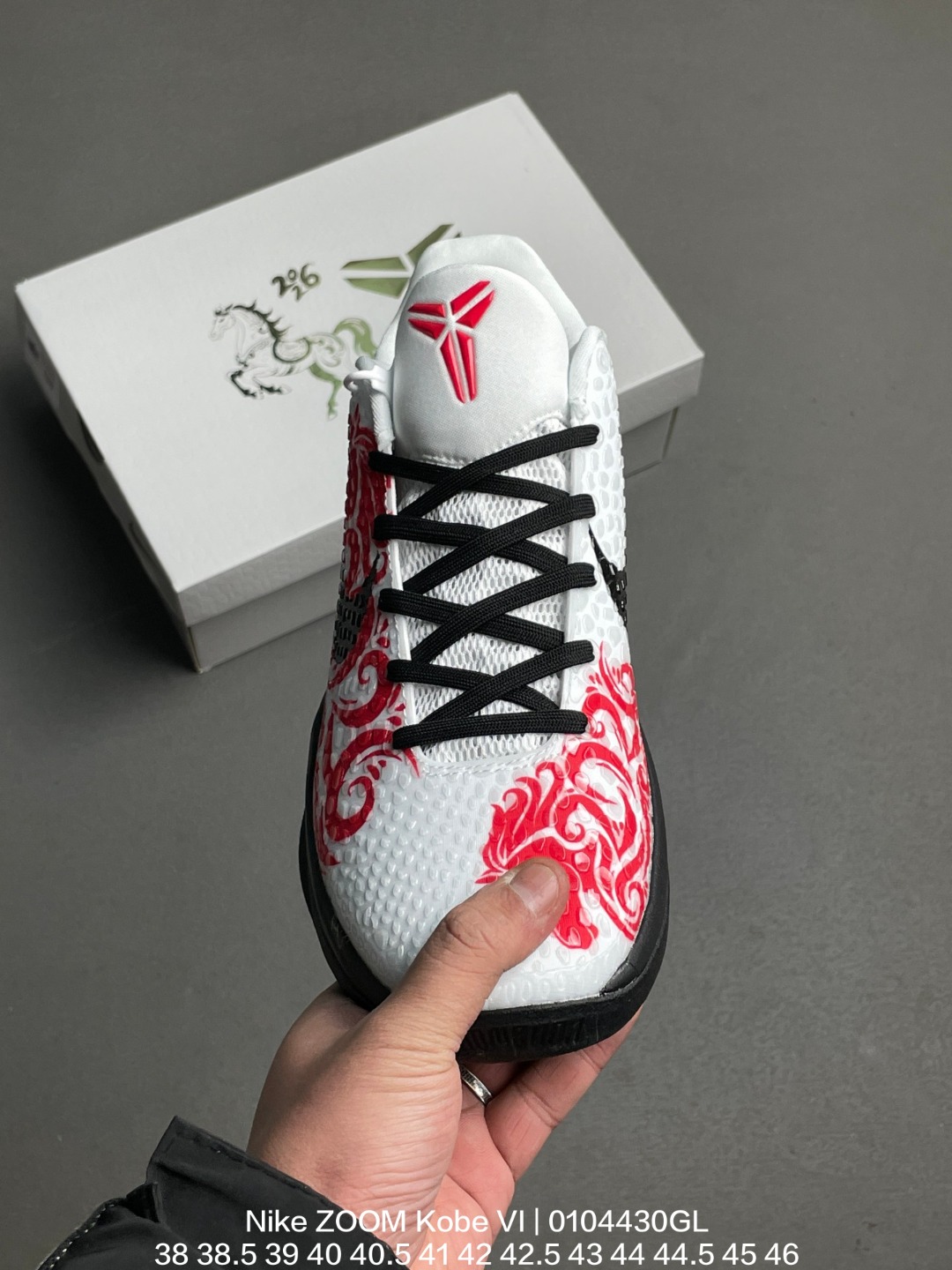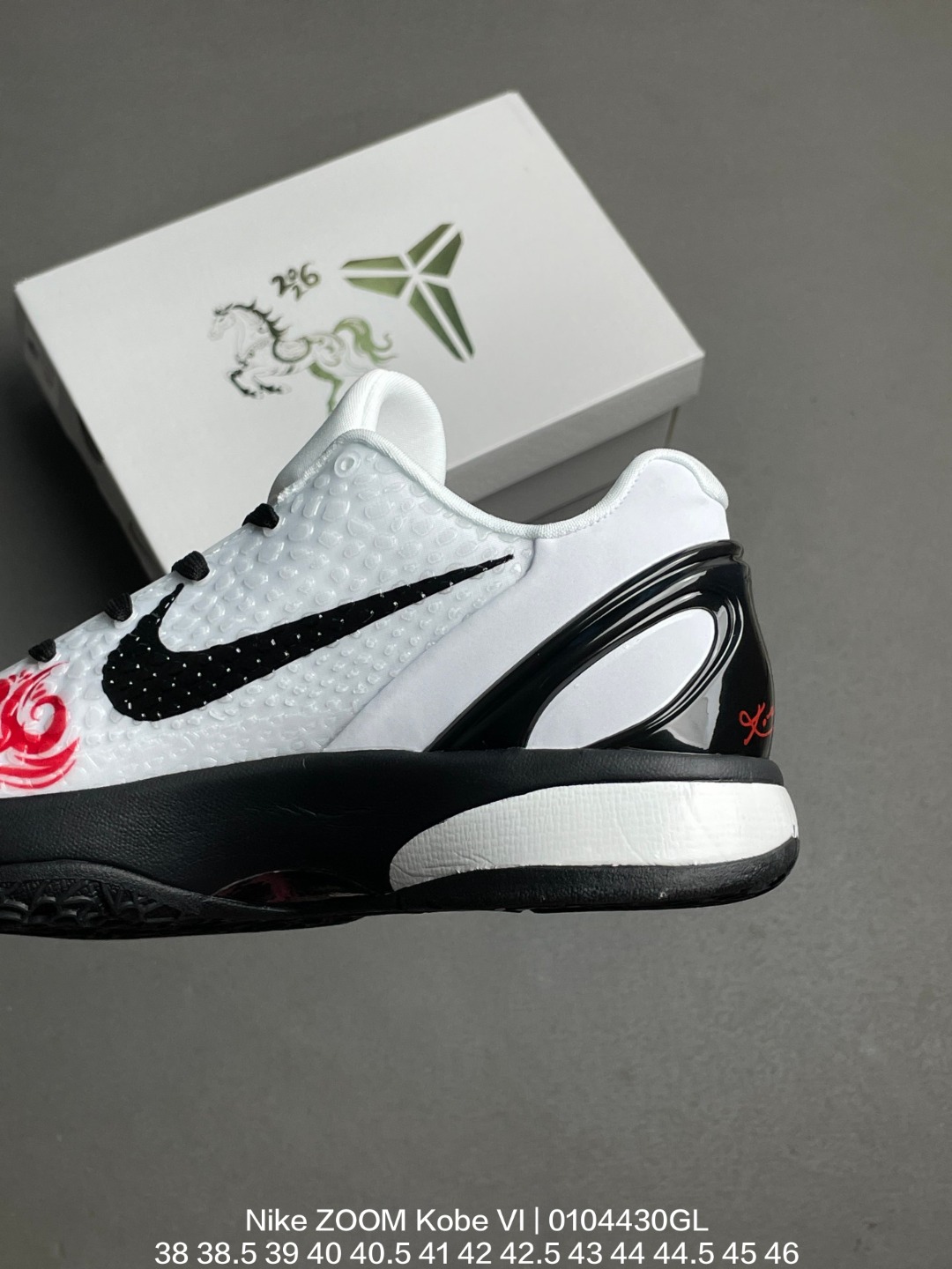 Nike 耐克 男鞋真标半码制 采用三层鞋面设计 覆盖足背的网眼材质 Flywire技术 聚氨酯凸点配合网眼材质 前后分离Zoom Air气垫装置 中足塑料纤维板及双层记忆海绵鞋垫迎来复刻 耐克Nike ZOOM Kobe VI White Red Black ZK6科比六代低帮运动篮球鞋