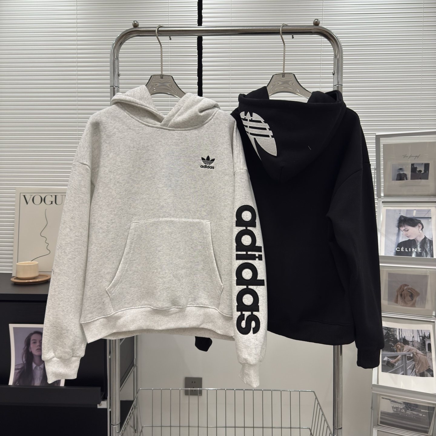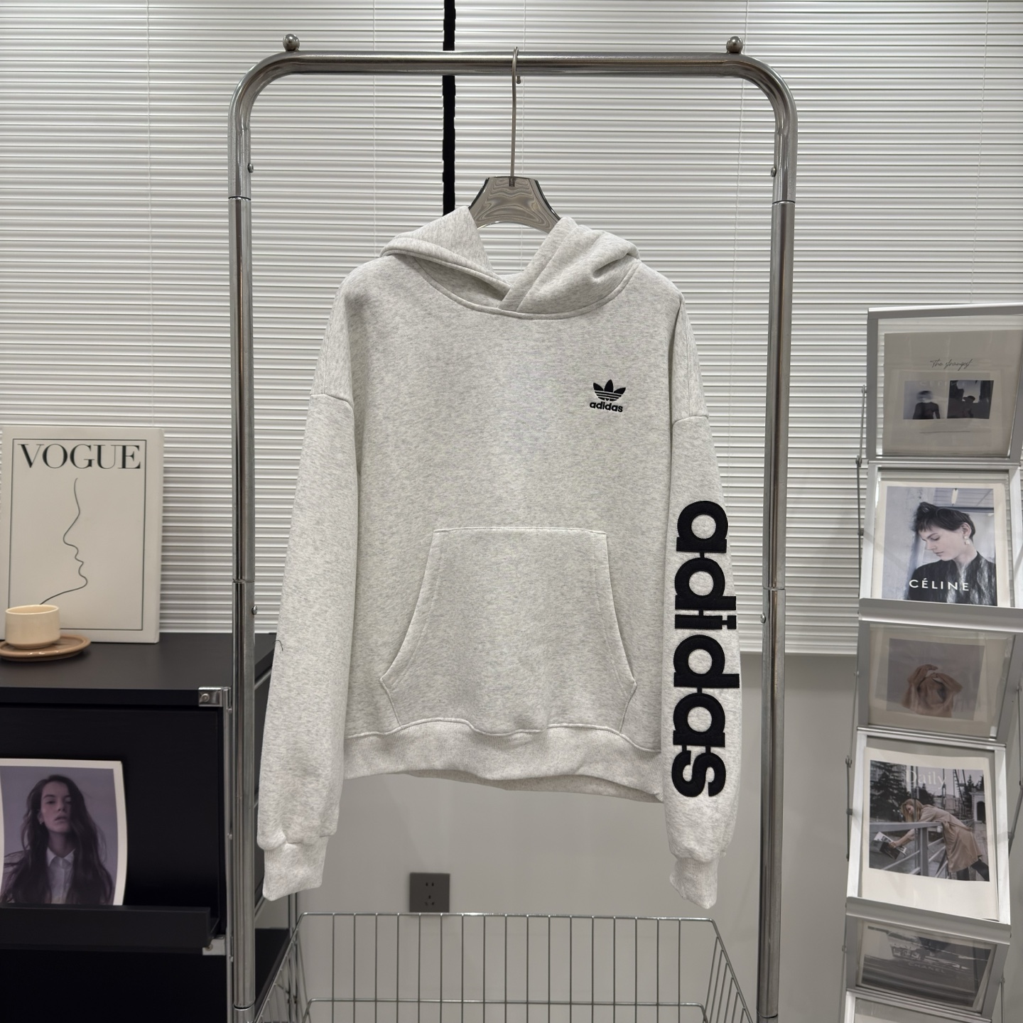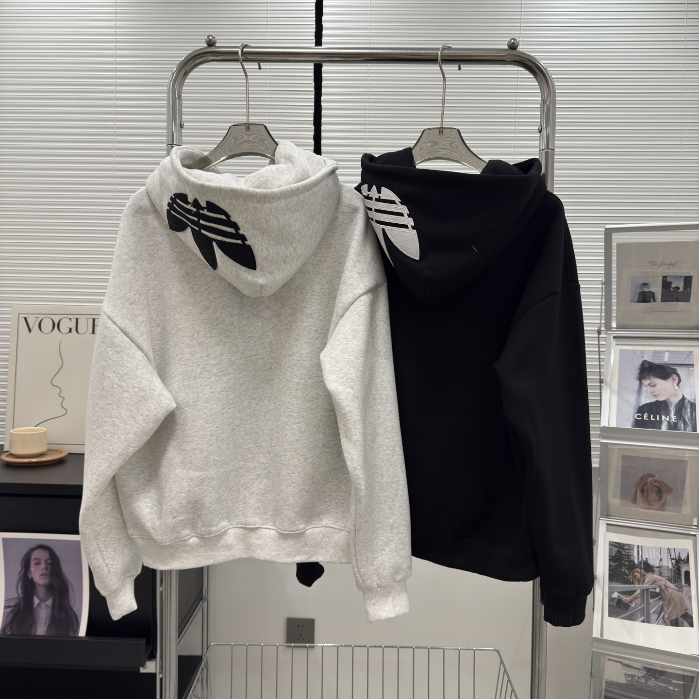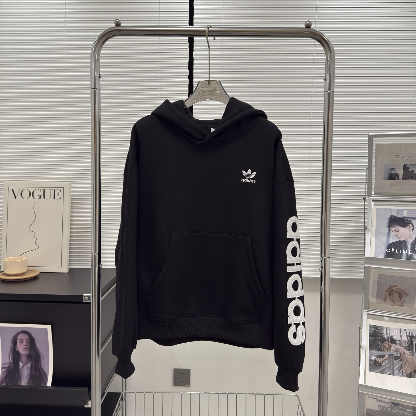 Adidas阿迪达斯三叶草冬季新款高版字母刺绣贴布男女同款加绒连帽卫衣