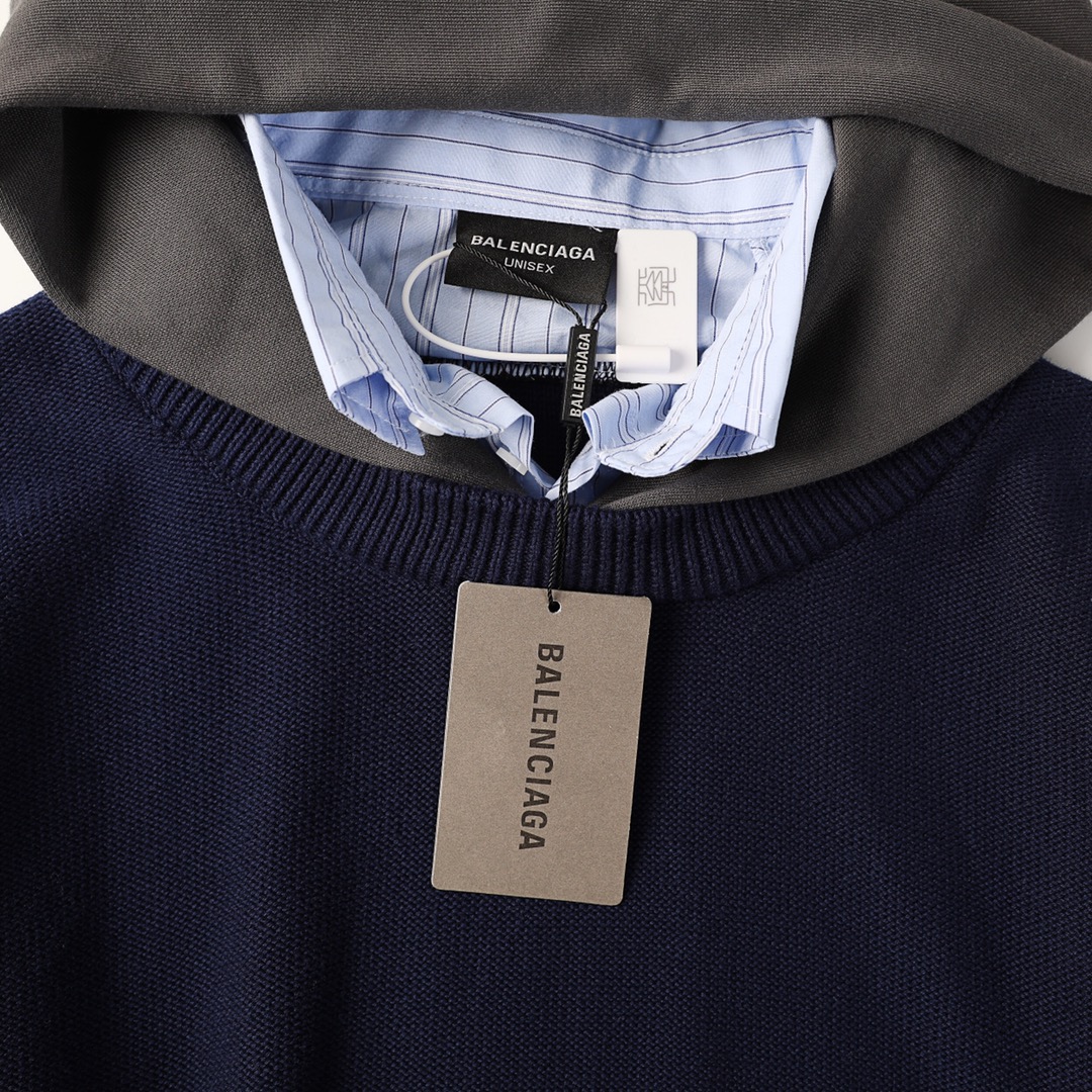 Balenciag 巴黎 明星胡兵穿搭示范24早秋重工款假三件套装48支羊毛混纺外套 内加卫衣和衬衫搭配设计 二件套装彰显独特个性