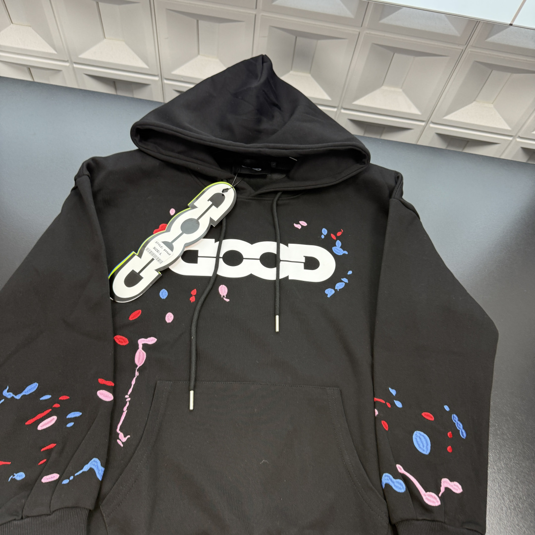 春季新款上新爆炸输出Good连帽卫衣 刺绣斑点多巴胺色彩 三标齐全官网一致 放大看细节原相机实物拍摄 颜色 黑色 尺码 L 4xl L 80 105斤 XL 105 120斤 2XL 120 140斤 3XL 140 160斤 4XL 160 180斤