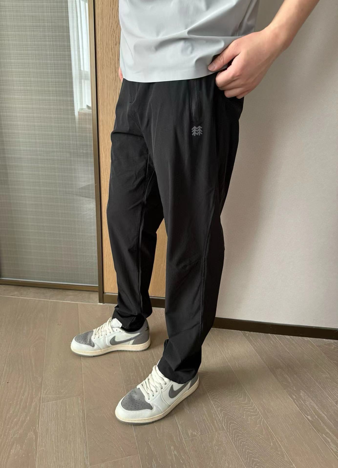 既有西装裤的正式感 又有运动裤的舒适感 上身效果特别有型 3D立体剪裁拼接的锥形裤裤型 腰部独特的拼接式松紧腰设计 让裤型平整有型 内置抽绳 穿着舒适更不会下滑 给你十足的安全感 裤子两侧隐形式拉链 YKK拉链 口袋设计 安全性极高 口袋下面印有立体的常青树logo 精致满满 细节满分 品质保证
